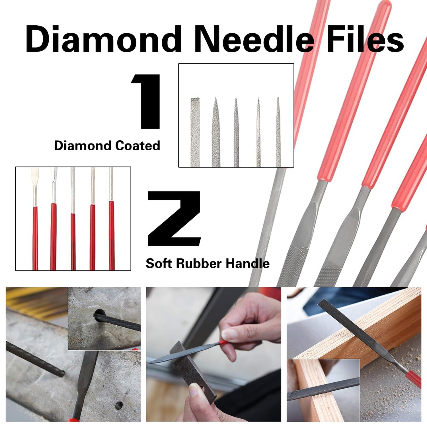 - ✅Diamond Needle Files: 5 different shapes files for your various need. Each file coated with industrial diamonds, suitable for removing, refining, reshaping, and scraping projects for filing wood, stone, metal, glass, plastic, model, jewelry, DIY and etc.