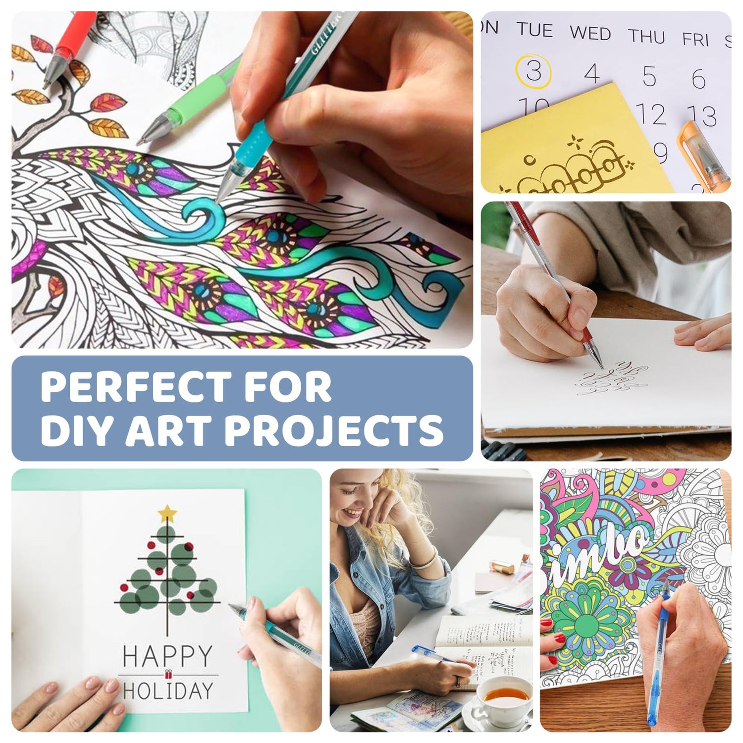- VERSATILE - Each colored pen comes with a comfort grip so you can easily continue with all your projects without getting tired. Not only can they be used for adult coloring, they are perfect for all decorations, scrapbooking, school projects, party invitations, greeting cards, doodling, DIY decorations. You can write, draw and color anywhere you feel inspired to get the creative juices flowing.