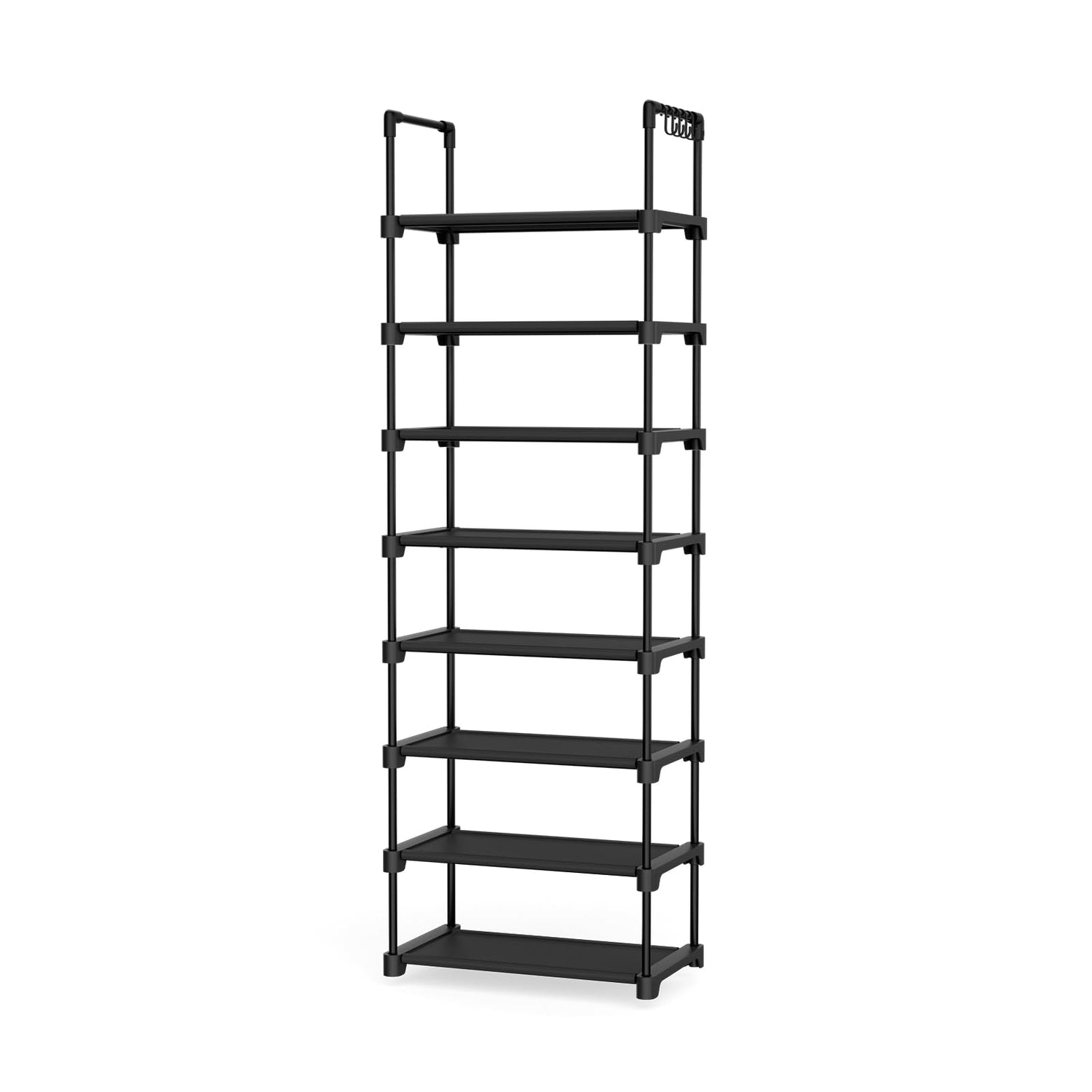 - 【8 Tiers Narrow Shoe Rack】The 8 tier shoe organizer can store up to 16-20 pairs of adult shoes, and you can remove one layer to fit long boots. This shoe organizer is not only suitable for shoes, but also for bags, toys, towels, sundries, books, plants and small accessories. Shoe storage with 5 hooks, you can hang keys, umbrellas, bags, etc., very practical design.
