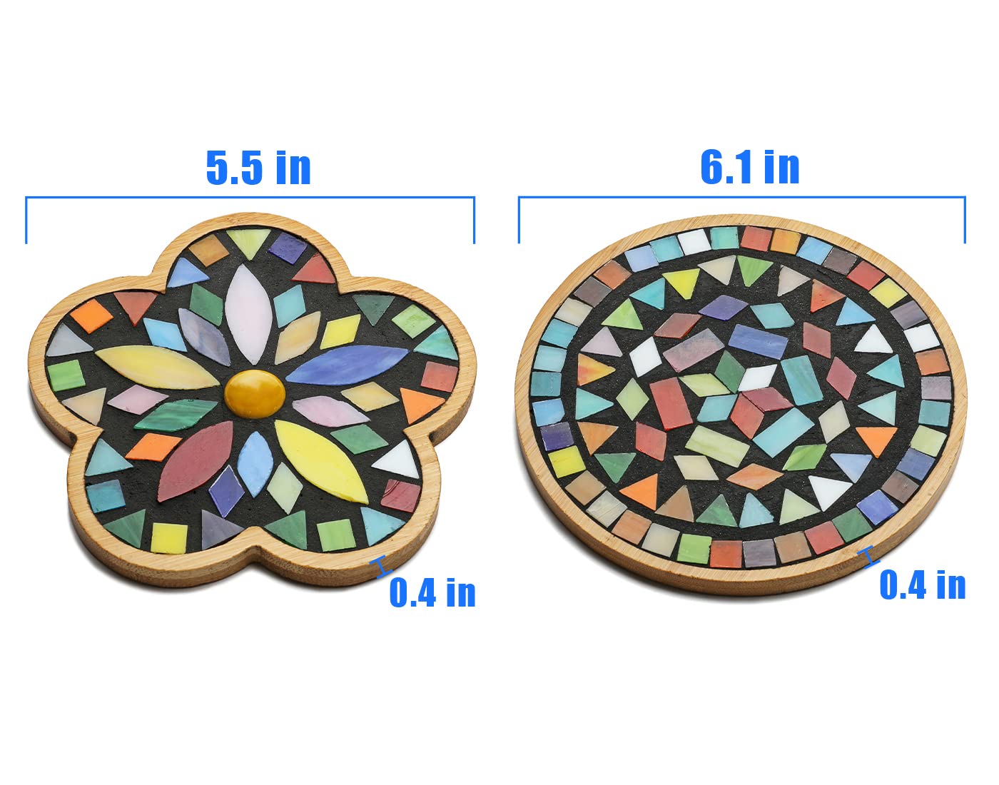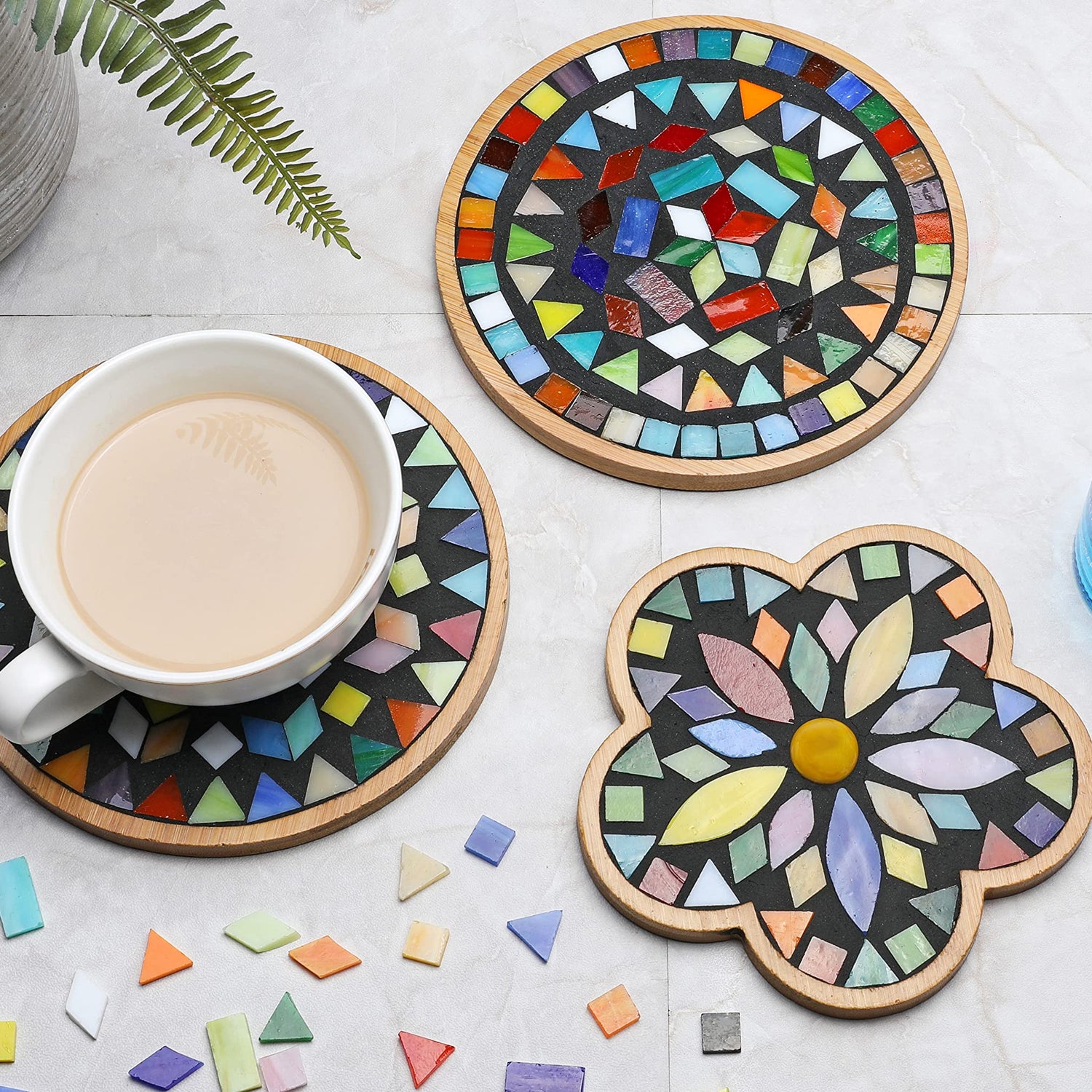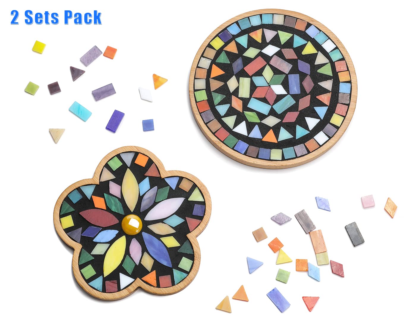 Lanyani 2 Sets of DIY Mosaic Craft Kits Mosaic Tiles Coaster Kit Make Your Own Mosaic Project Handmade Craft Set with Stained Glass Mosaic Tile Pieces for Decoration and Gift