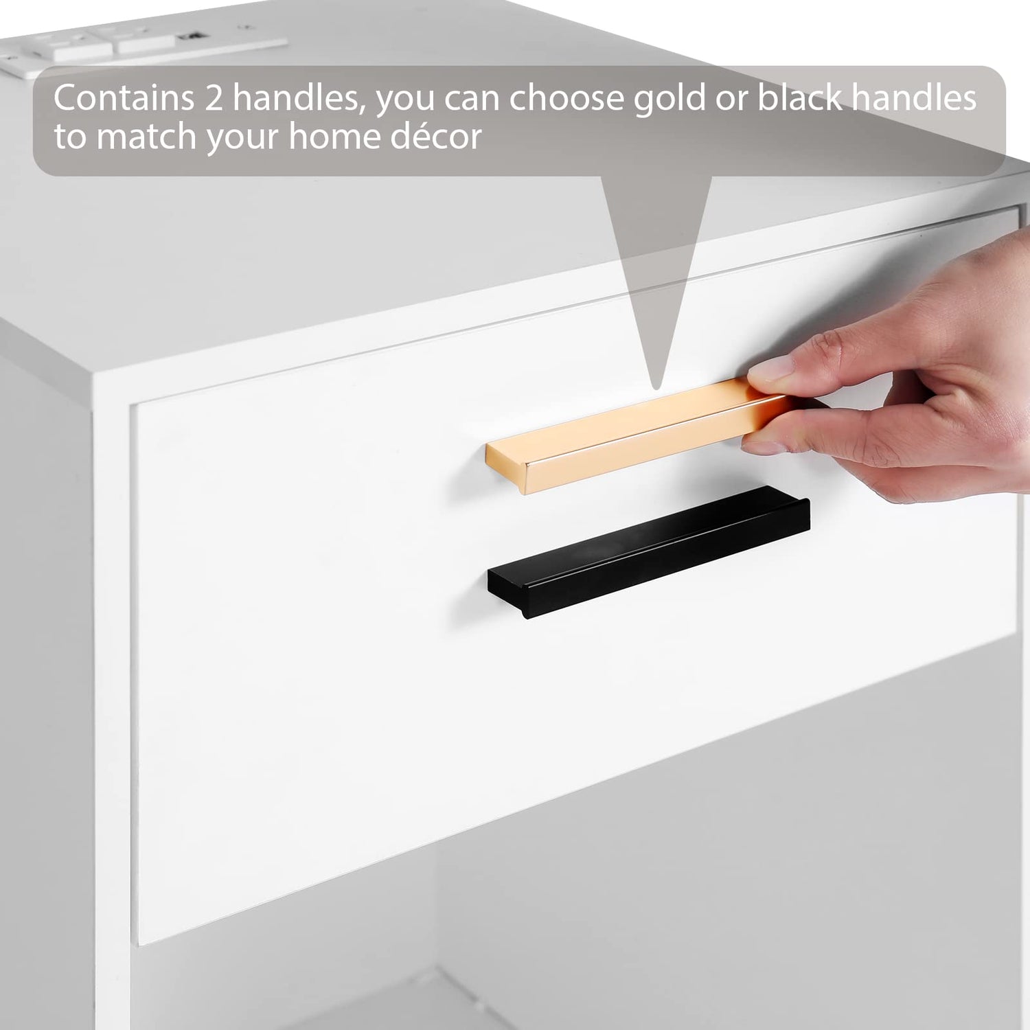 - [Special Details] Our nightstand is equipped with 2 handles, which are elegant gold and calm black respectively. No matter which color you choose, it can blend perfectly with your home that allowing you to create decorative styles of your own.