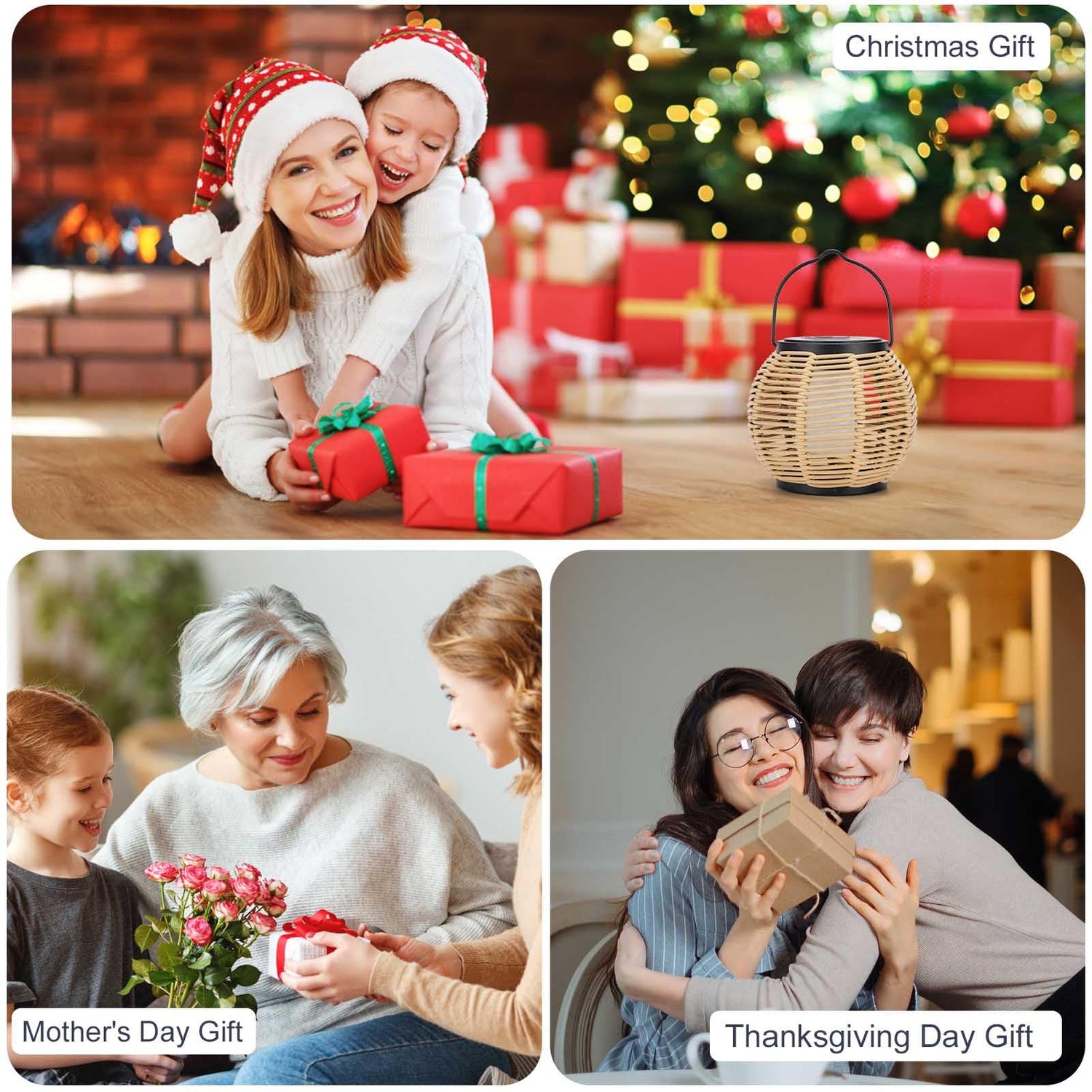 • 【NATURAL RATTAN LANTERN】 - These solar lanterns for outside are from metal and durable natural bamboo.Solar powered lanterns with special dancing flame designs that look like real flames.This provides a gentle and romantic atmosphere to accompany.