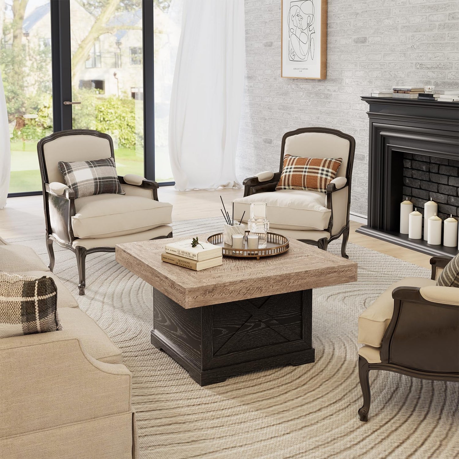 - Space Saving: Made of premium FSC-certified engineered wood. Enough desktop saves a lot of space for compact space, The 31.5-inch square tabletop offers plenty of room for drinks, books, decor, and snacks while keeping a compact footprint. It could be a living room table surrounding a large set of sofa or in a small space.