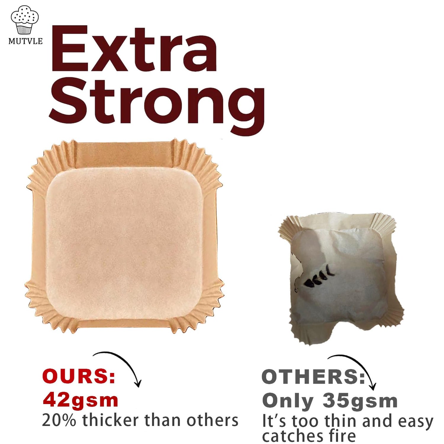 - 【Easy to Use】These non-stick air fryer disposable paper liner are designed with a square bowl shape, which do not need to tear, fold, cut, nor bend, and you can directly put it in when you are ready to cook. Its heightened edge 4.5cm can protect the side of fryers and prevent food from sticking to them.