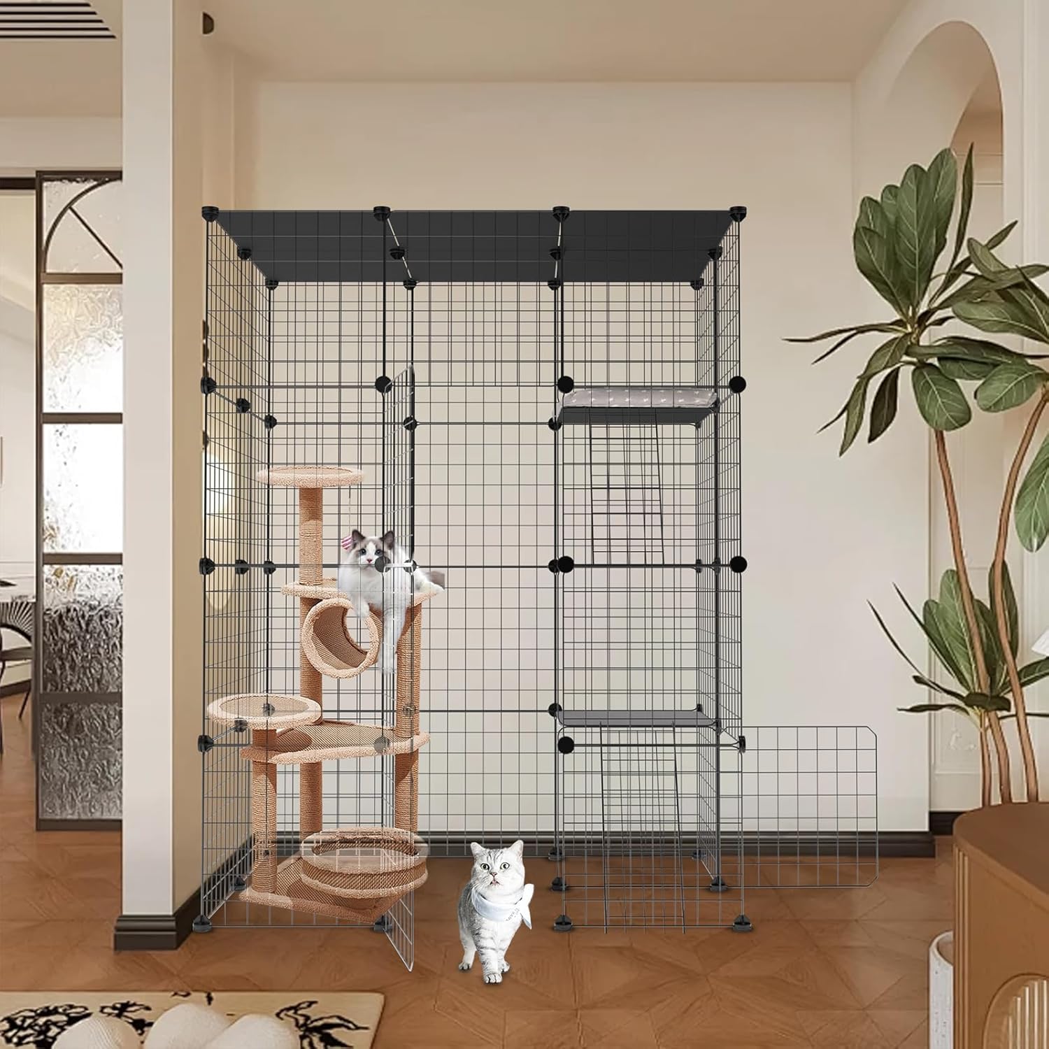 - Exclusive Space -You can put all your pet's things in it as you like,such as cat climbing frame,litter box,toys,etc.to create its exclusive kingdom.cat cage is suitable for living room, bedroom, patio and else, provide spacious space for your pet to move around.