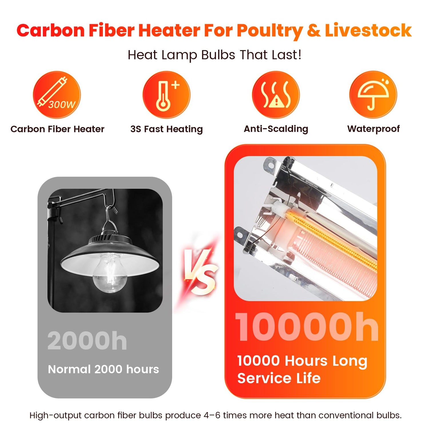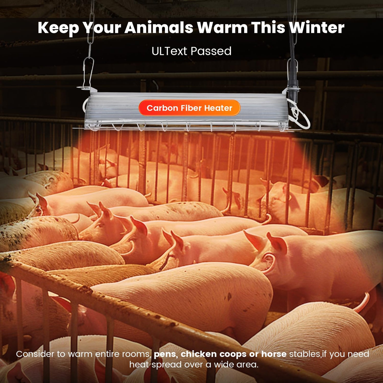 - ใ๐๐๐๐ ๐๐ง๐ ๐๐ฎ๐ซ๐๐๐ฅ๐ ๐๐๐ญ๐๐ซ๐ข๐๐ฅ๐ฌใThis Livestock heater is certified by UL, made of flame retardant material, the shell is insulated for a long time and does not heat up, with overload protection, overheating protection.Heavy-duty grill helps to prevent damage to bulbs and animals. Rugged and reliable heat lamp; Safer than other livestock heat lamps.