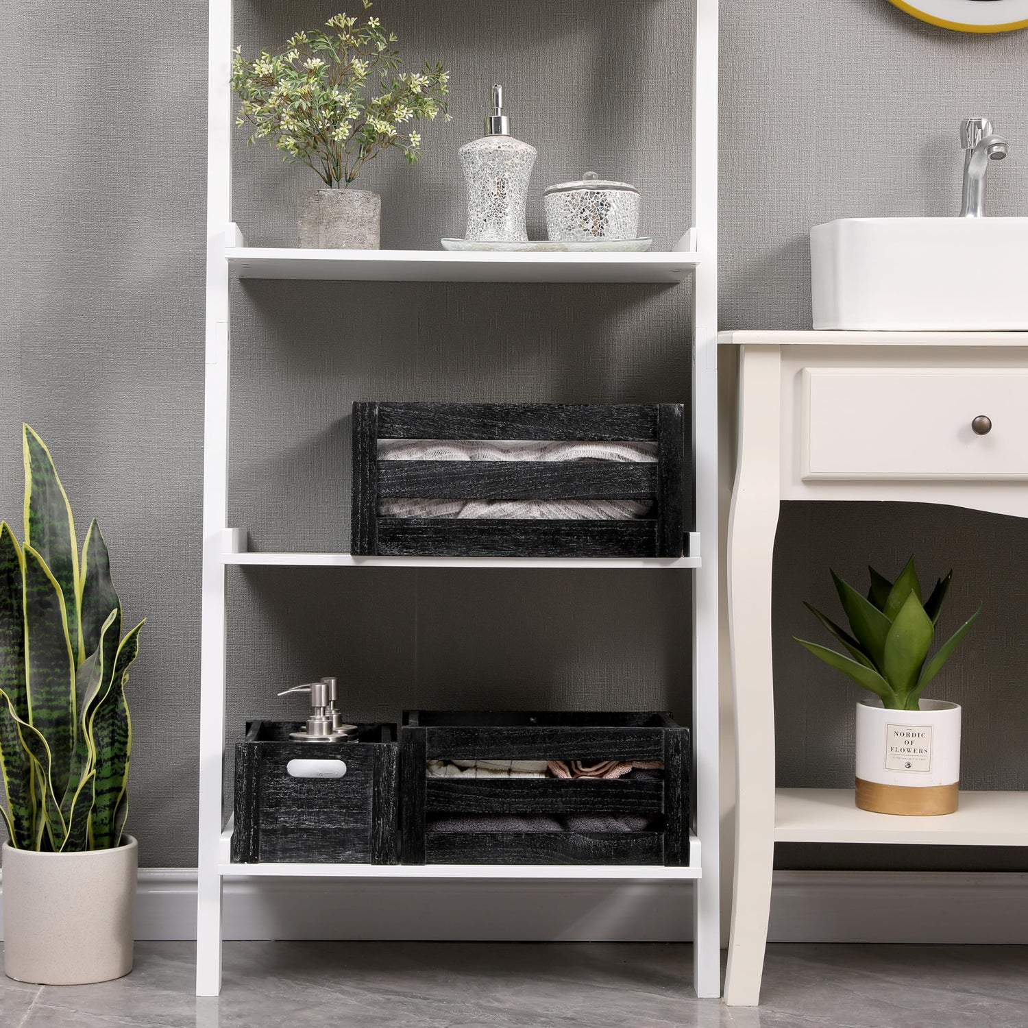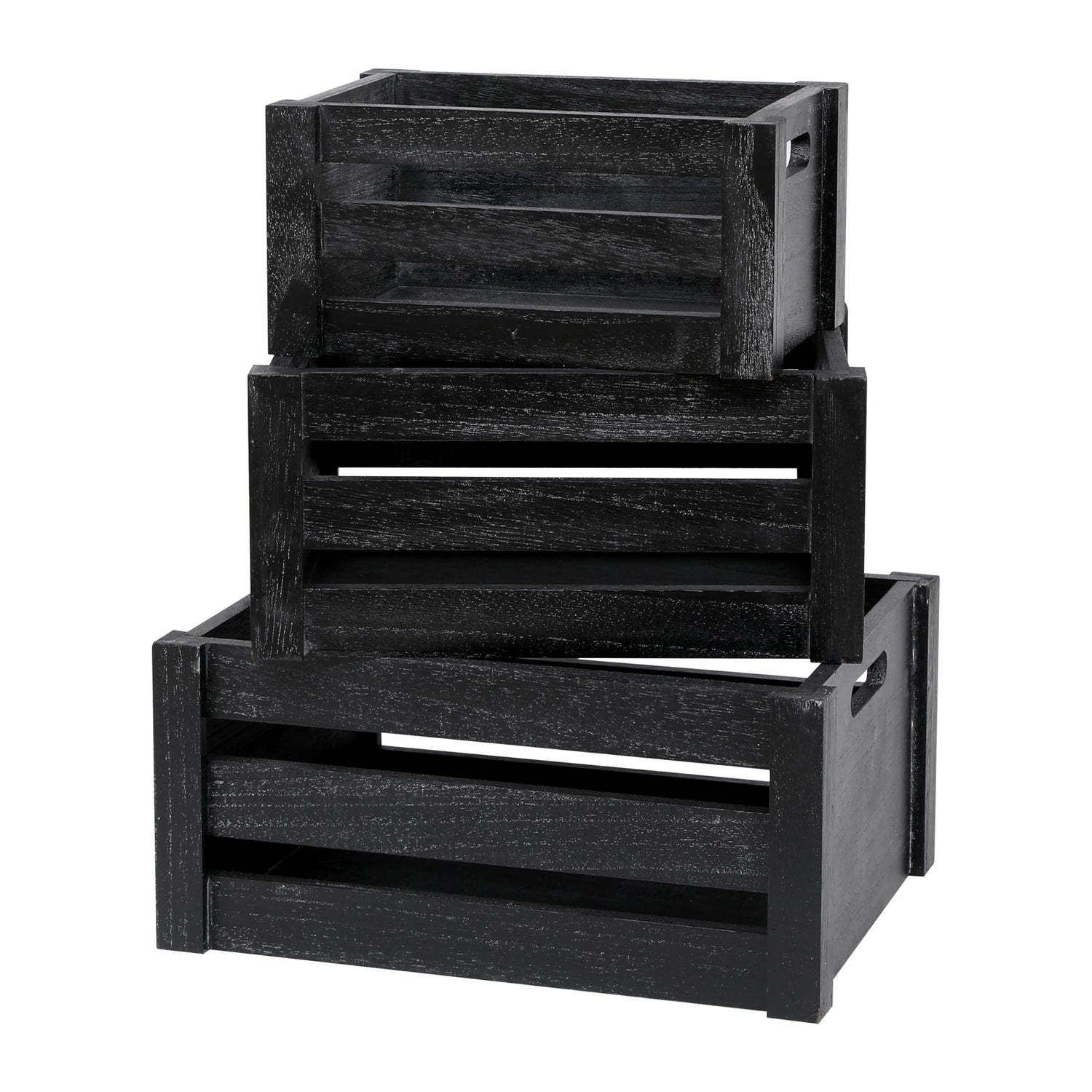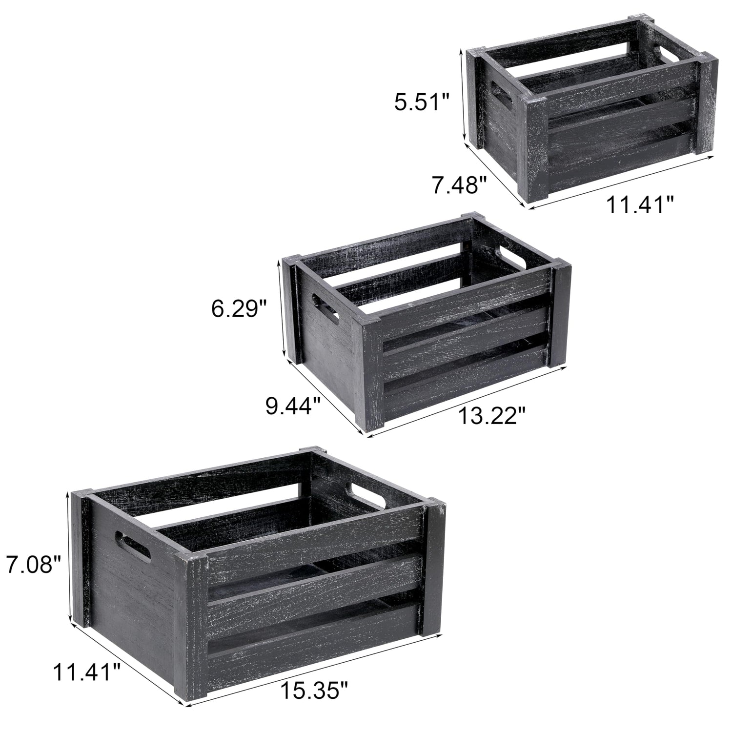 Large Classic Black Wooden Crates For Dispaly,Set Of 3 Wood Crates With Handles,Rustic Handmade Wood Boxes For Storage Or Display,Solid Wood Decrative Boxes (Classic Black)