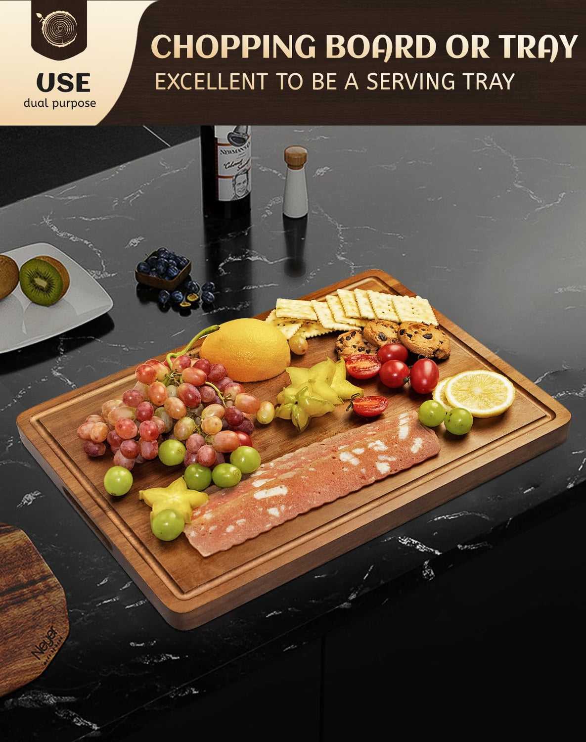Large Cutting Board Wood for Kitchen, 17x12x1" Reversible Large Wooden Chopping Board Charcuterie boards with Juice Grooves and Side Handles, Ideal
