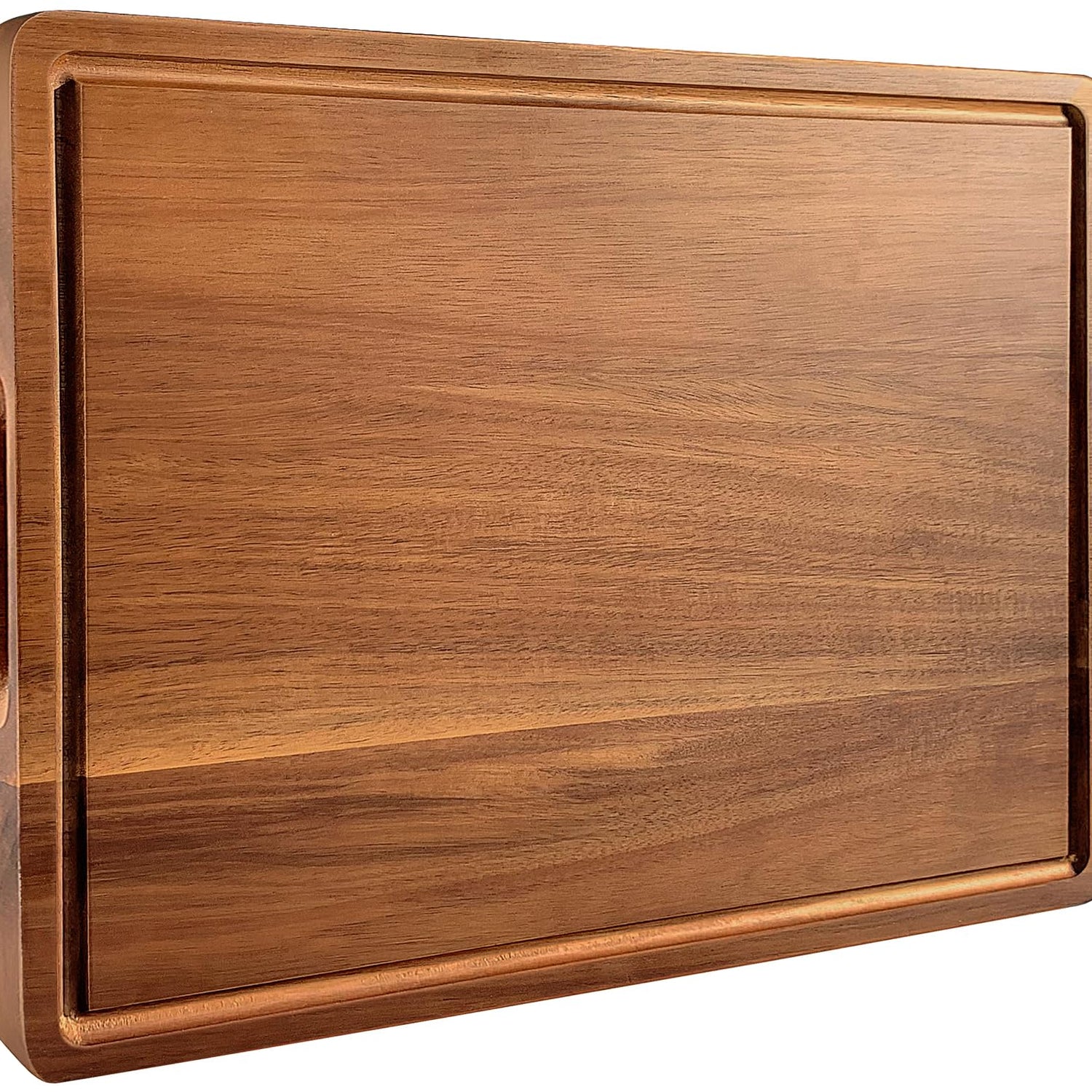 - Crafted to Last with Premium Acacia Wood: Meticulously crafted from high-quality, aged acacia wood, renowned for its exceptional durability and strength. Our cutting board is 1" thick, ensuring a sturdy and long-lasting kitchen companion. Made to withstand heavy-duty chopping and cutting, it significantly prolongs the sharpness of your chef's knife, reducing sharpening frequency by up to 30%.
