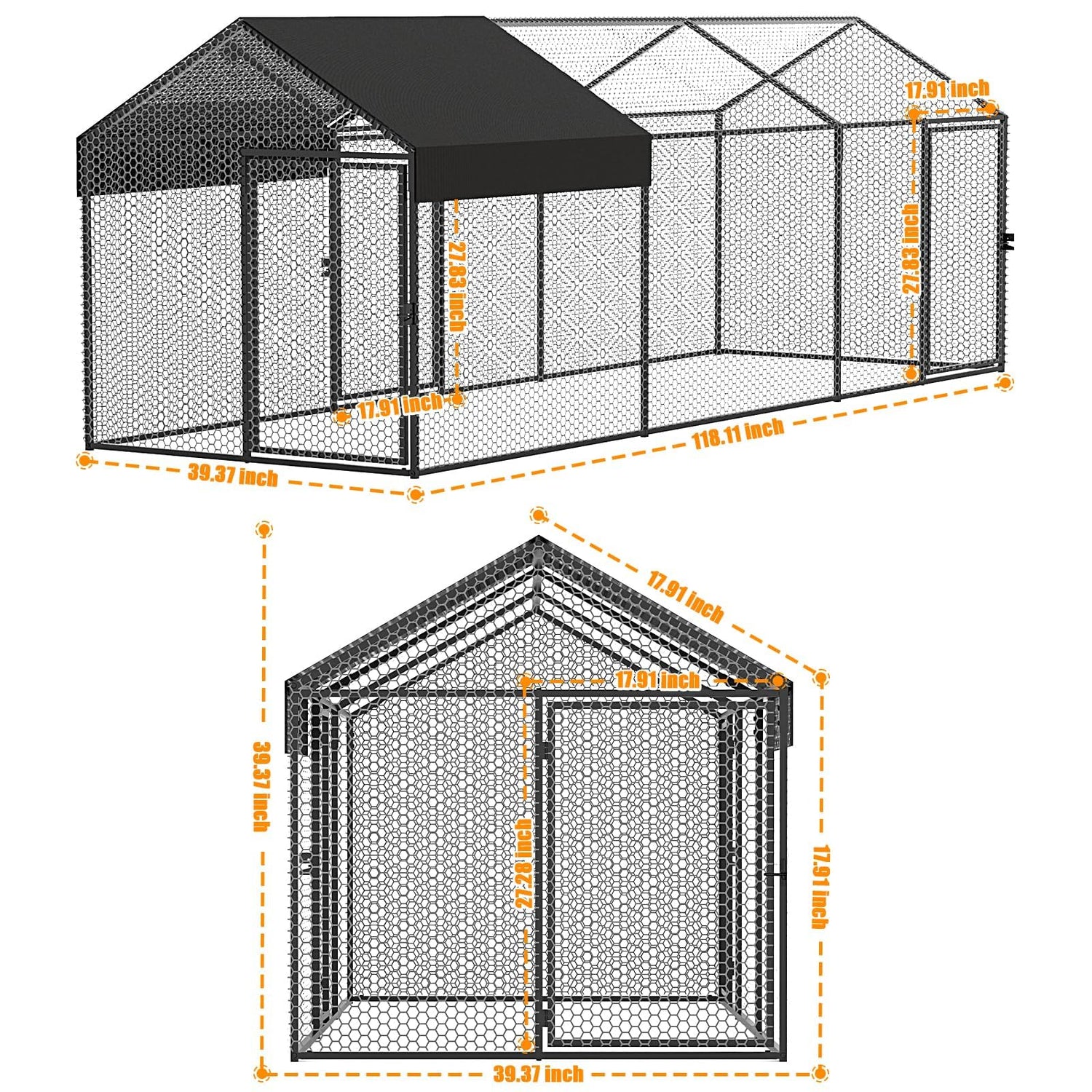 Large Metal Chicken Coop 120"×40"×40" Heavy Duty Chicken Run Hen House with Waterproof Anti-UV Cover for Outdoor Chicken Pens with Chicken Swing