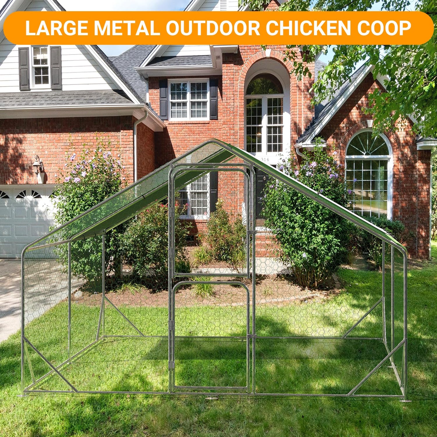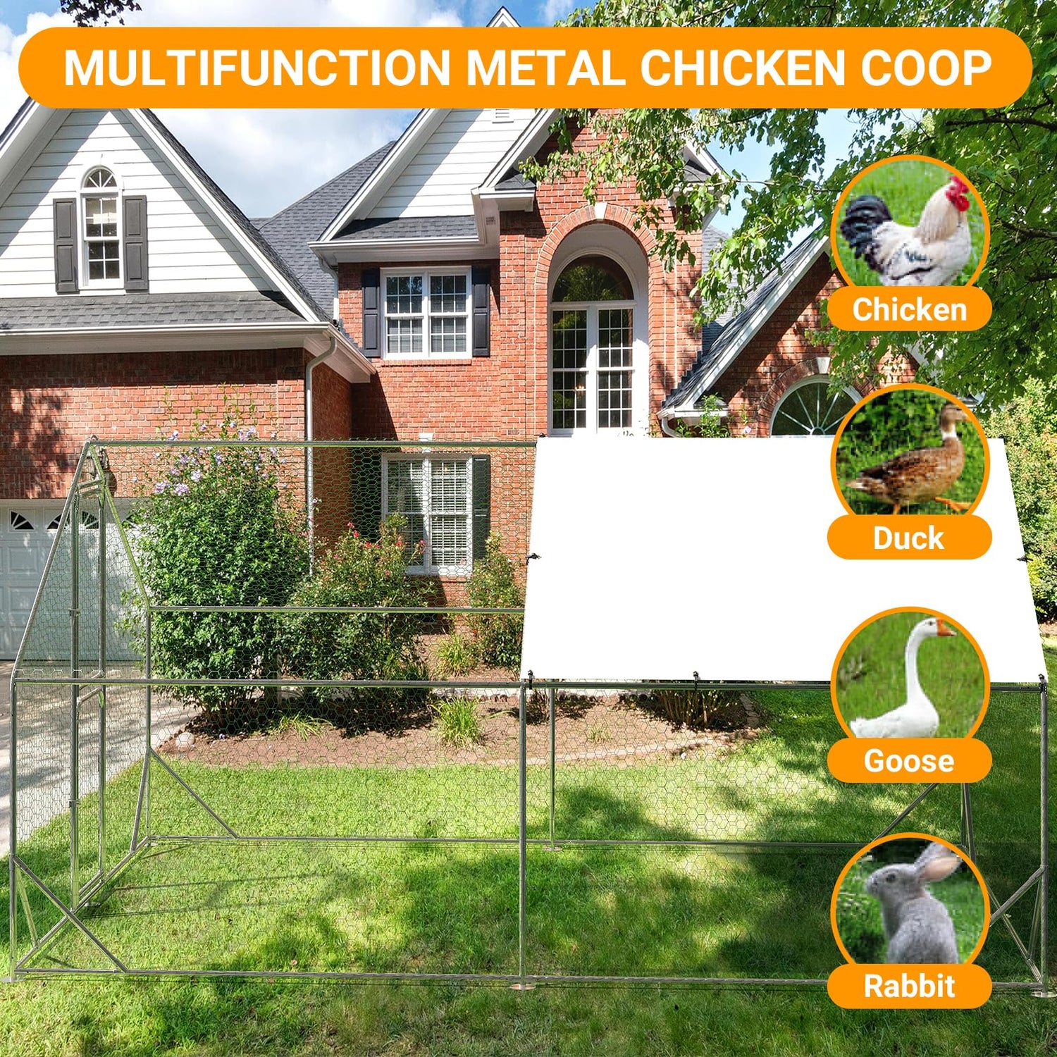 - Multifunctional: Heavy duty walk-in chicken coop can be used as a habitat for chickens, ducks, goose, rabbits, puppy and more, as well as a greenhouse for protecting plants and flowers.