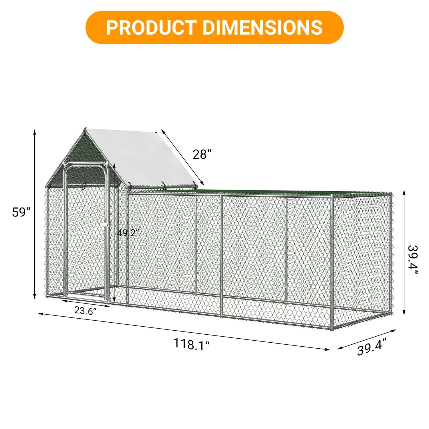 Generous dimensions (10'Wx 3.3'D x 5'H) provide ample space for your flock to roam freely.