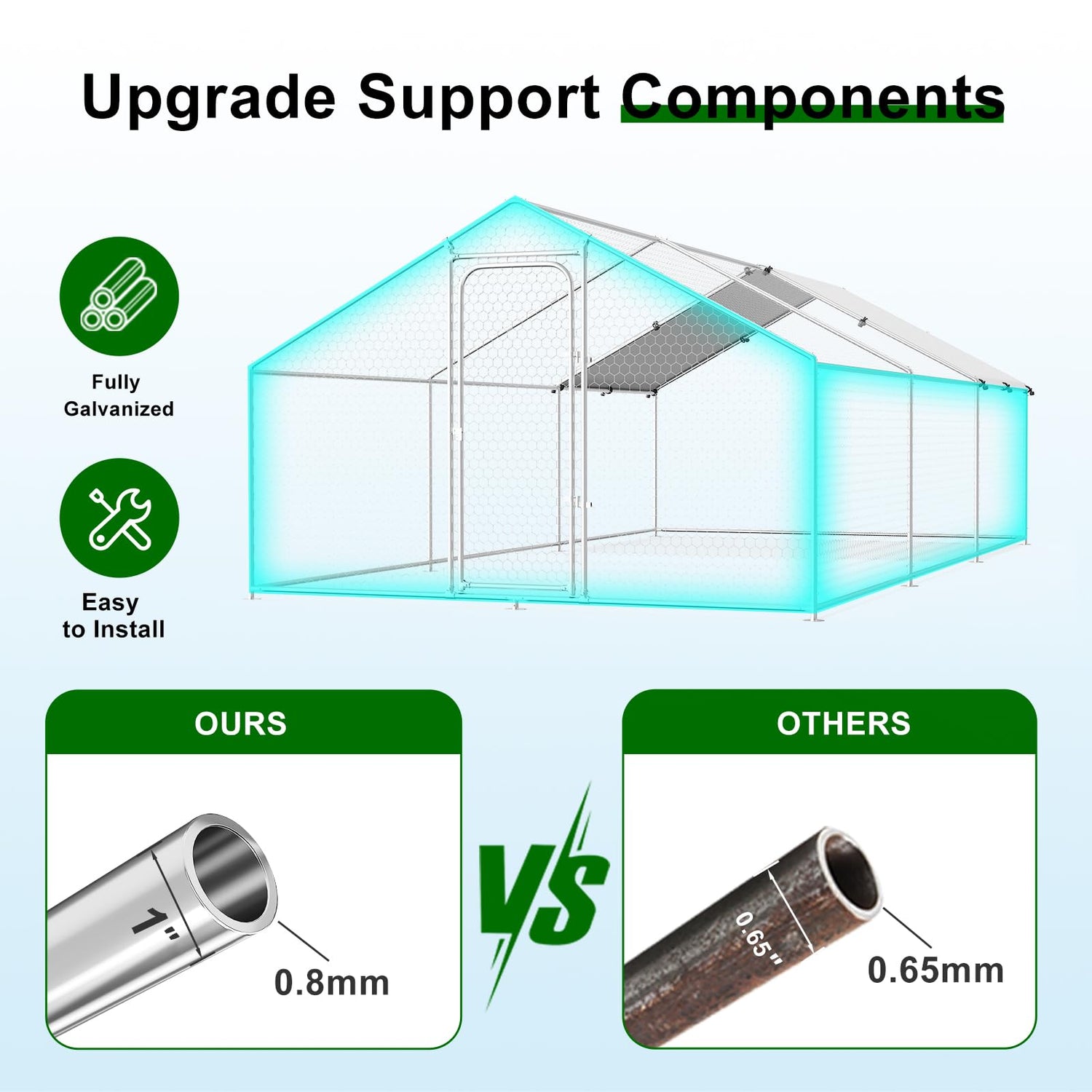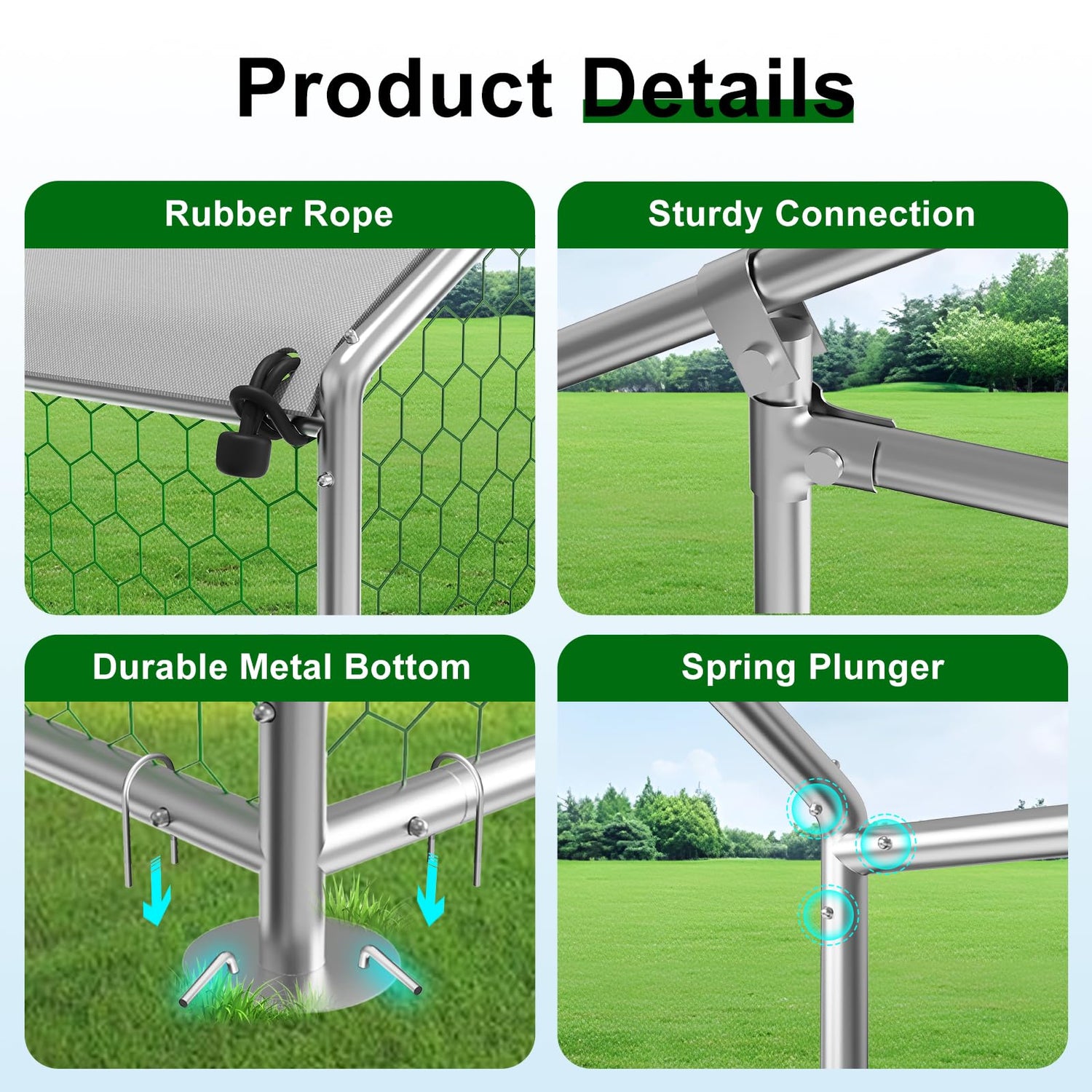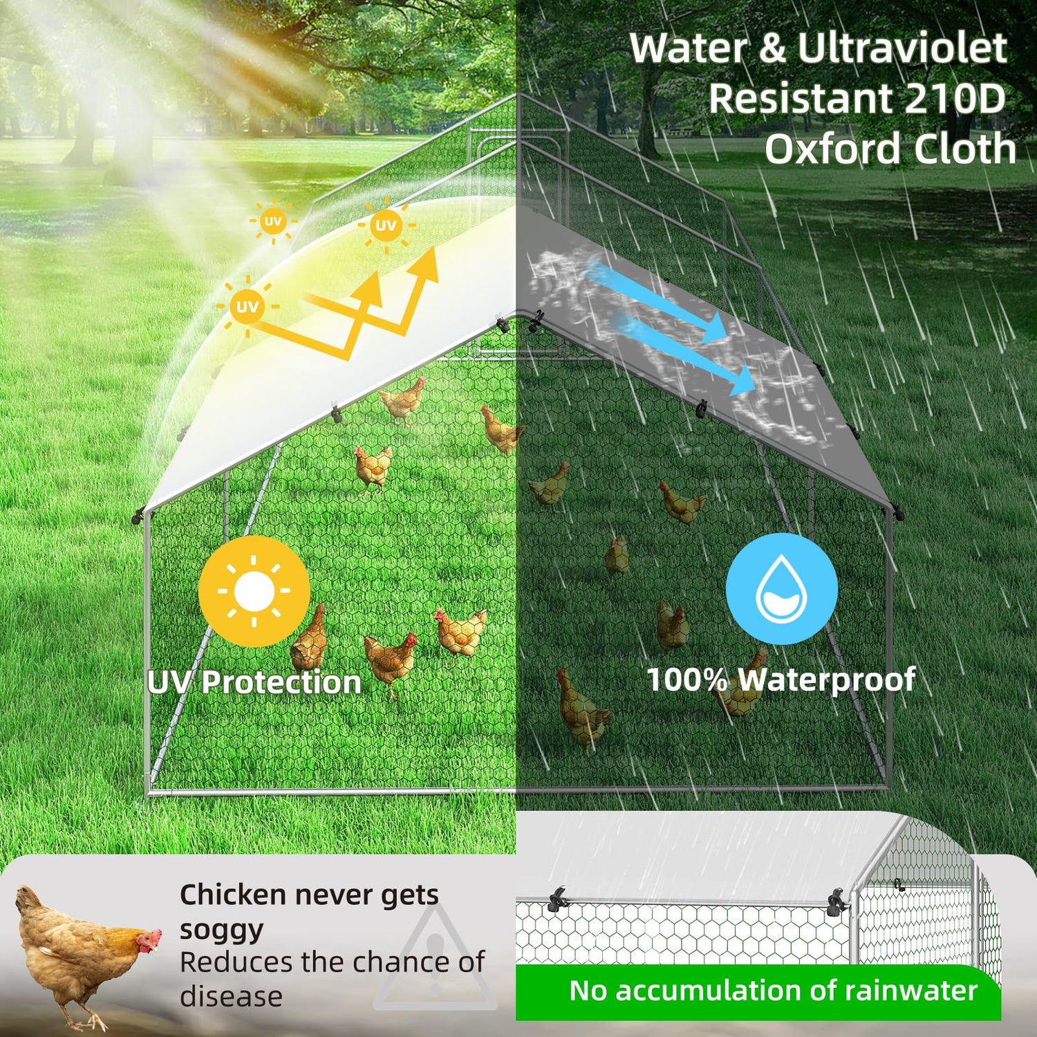 - Anti- Rust and Durable Steel Structure:The chicken coop uses a high-quality steel pipe frame, coupled with galvanizing technology, don't worry about rusting in outdoor. The steel pipe is strong and stable enough in windy and heavy rain