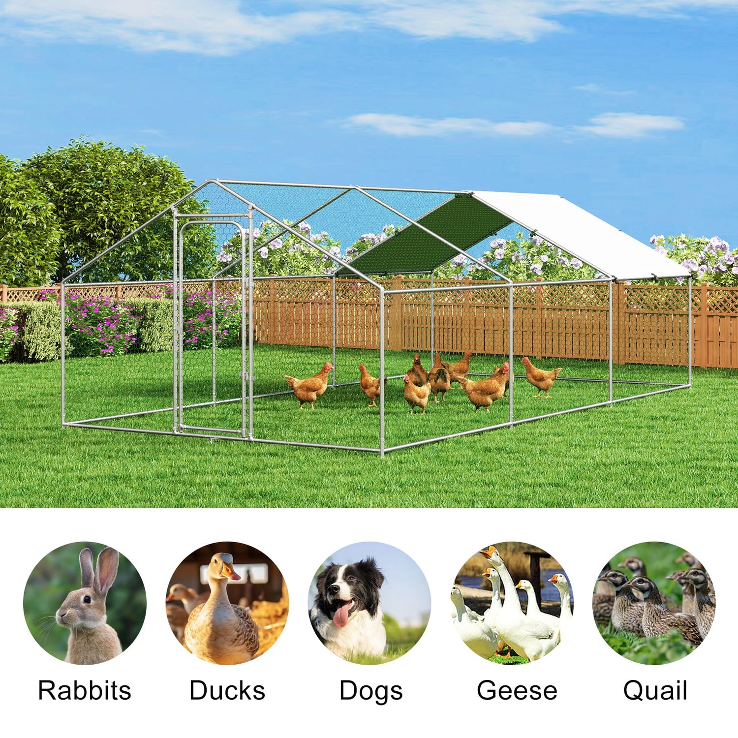 Large Metal Chicken Coop Walk-in Poultry Cage Hen Run House with Waterproof and Anti-Ultraviolet Cover for Backyard Farm Garden, Cage for Rabbits Duck Spire Roof(10’ W x 19.7’ L x 6.4’ H)
