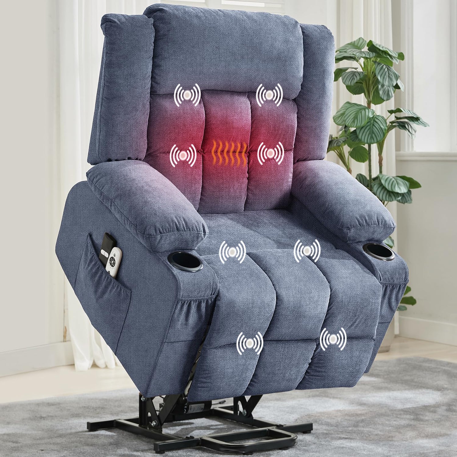 - [Multifunctional Comfort Features]: This power lift chair offers an 8-point massage function with three vibration intensities and three massage modes, perfect for seniors seeking extra comfort. The built-in heating feature provides soothing warmth to the lumbar area, while the motorized lift system makes standing up and sitting down effortless