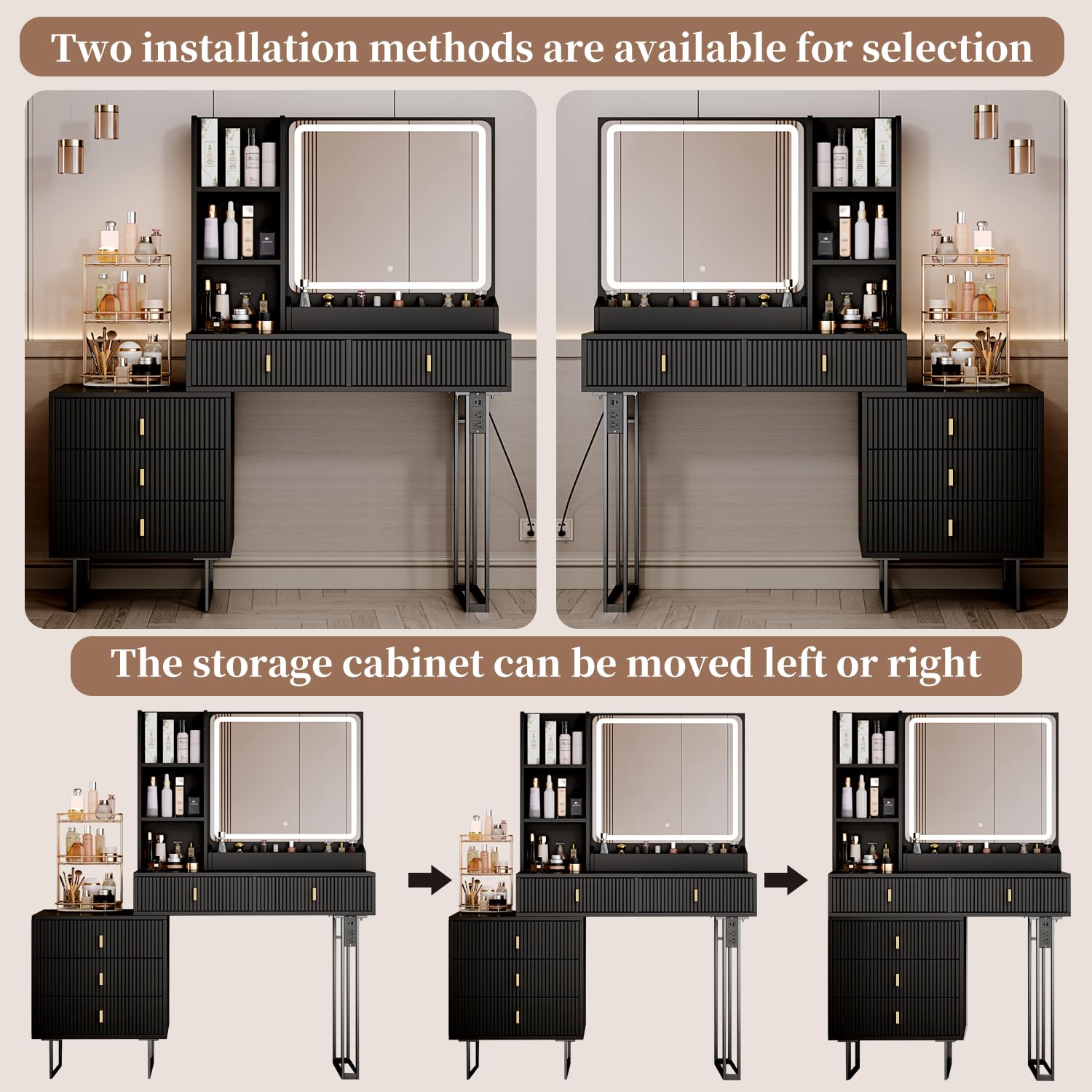 - 【Flexible combinations】The size of our Vanity Desk can be adjusted according to the length you need, and the position of the bedside table is also interchangeable from left to right, so that it can be placed and installed according to your needs to meet your multiple needs