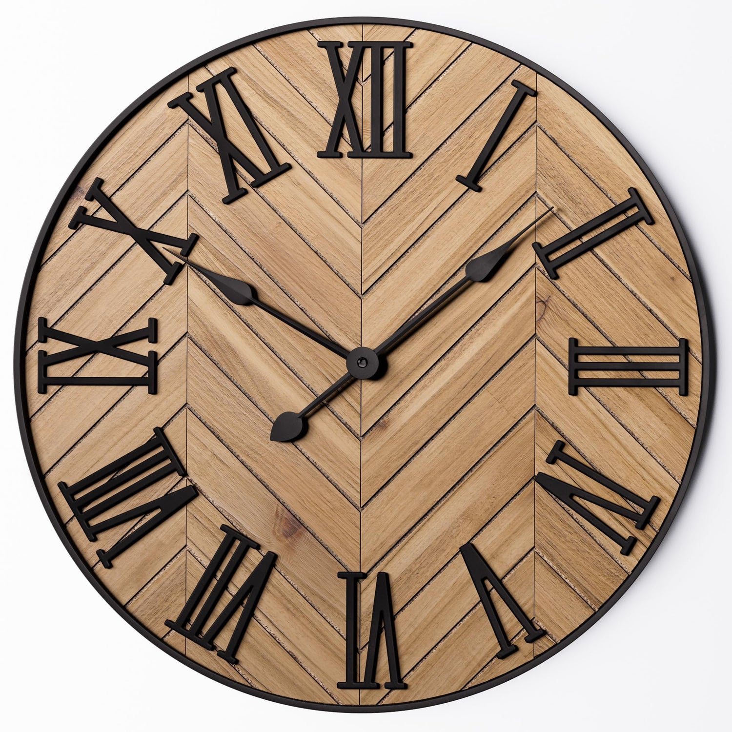 - DECORATIVE & FUNCTIONAL - With its Herringbone pattern, this large decorative wall clock is timelessly stylish and will elevate your home decor, whether farmhouse or modern. This giant wall clock matches elegantly with other HB Design Co. products. Check out our store and complete your home!