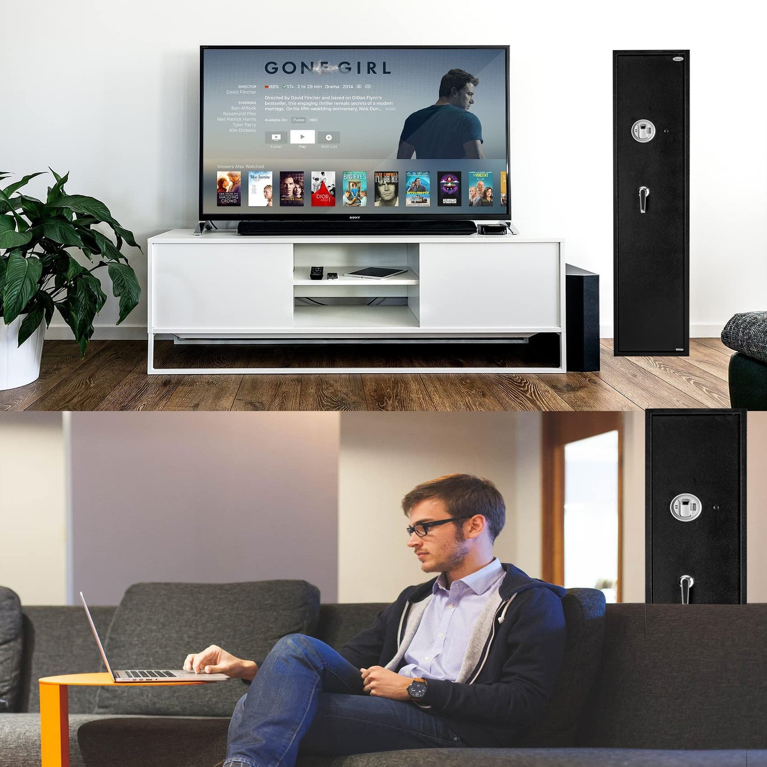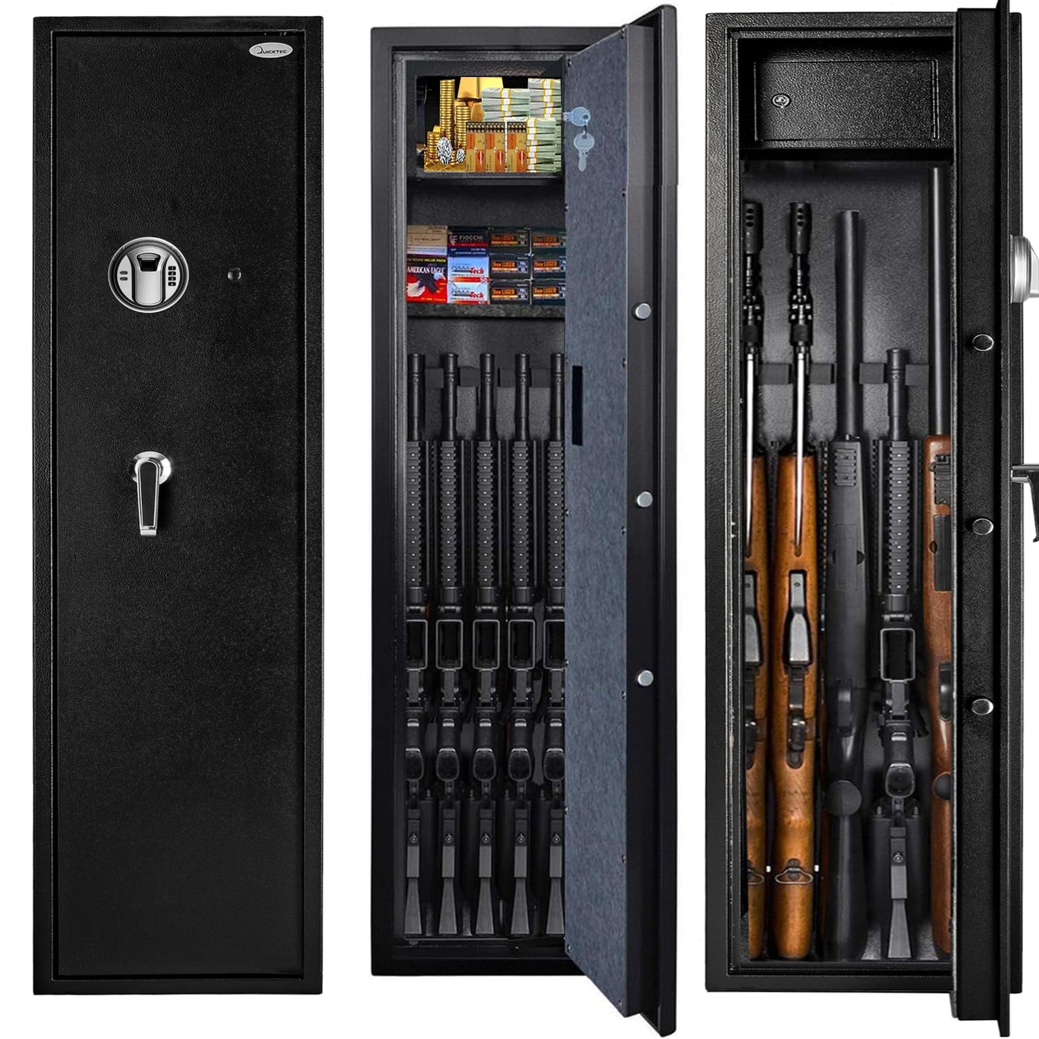 - 【QUICK ACCESS BIOMETRIC RIFLE SAFE】Biometric Rifle Safe stores up to 5 rifles and some handguns, is designed for quick firearm access during emergencies. Stores up to 125 Fingerprints and feel confident protecting your firearms, it is good for preventing unwanted visitors or your children from accessing your guns. With a biometric fingerprint safe, you no longer need to remember a combination or carry a key. Everything you need is right at your fingertips