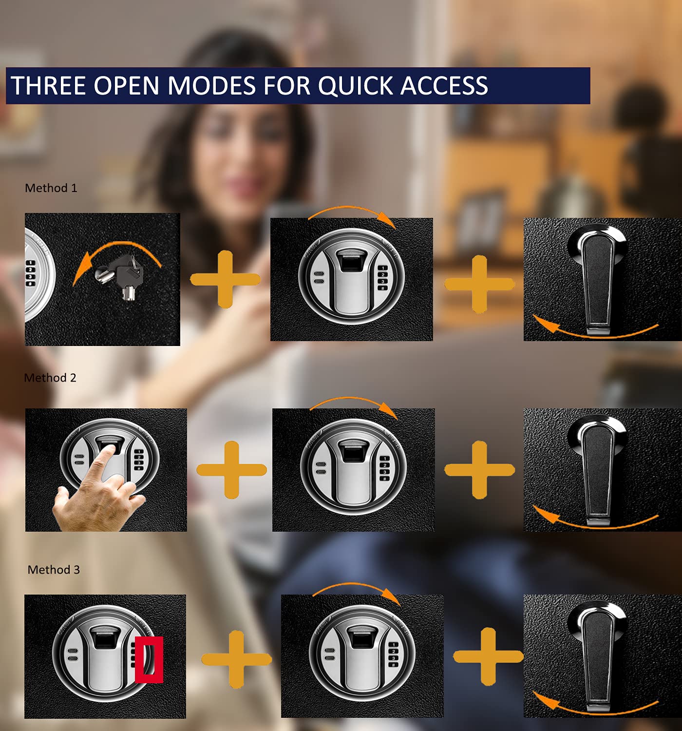 - 【THREE MODES of ENTRY】Biometric rifle safe features 3 methods of securing and accessing your firearms. It's equipped with one-touch biometric system and 3-digit keypad can be programmed, our safe also includes 2 emergency keys for quick access. Make sure keep the emergency keys out of your safe in case the batteries die