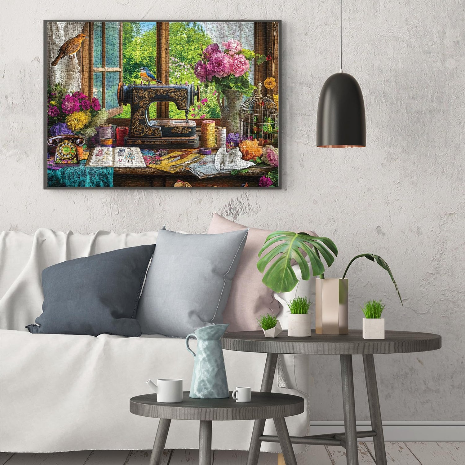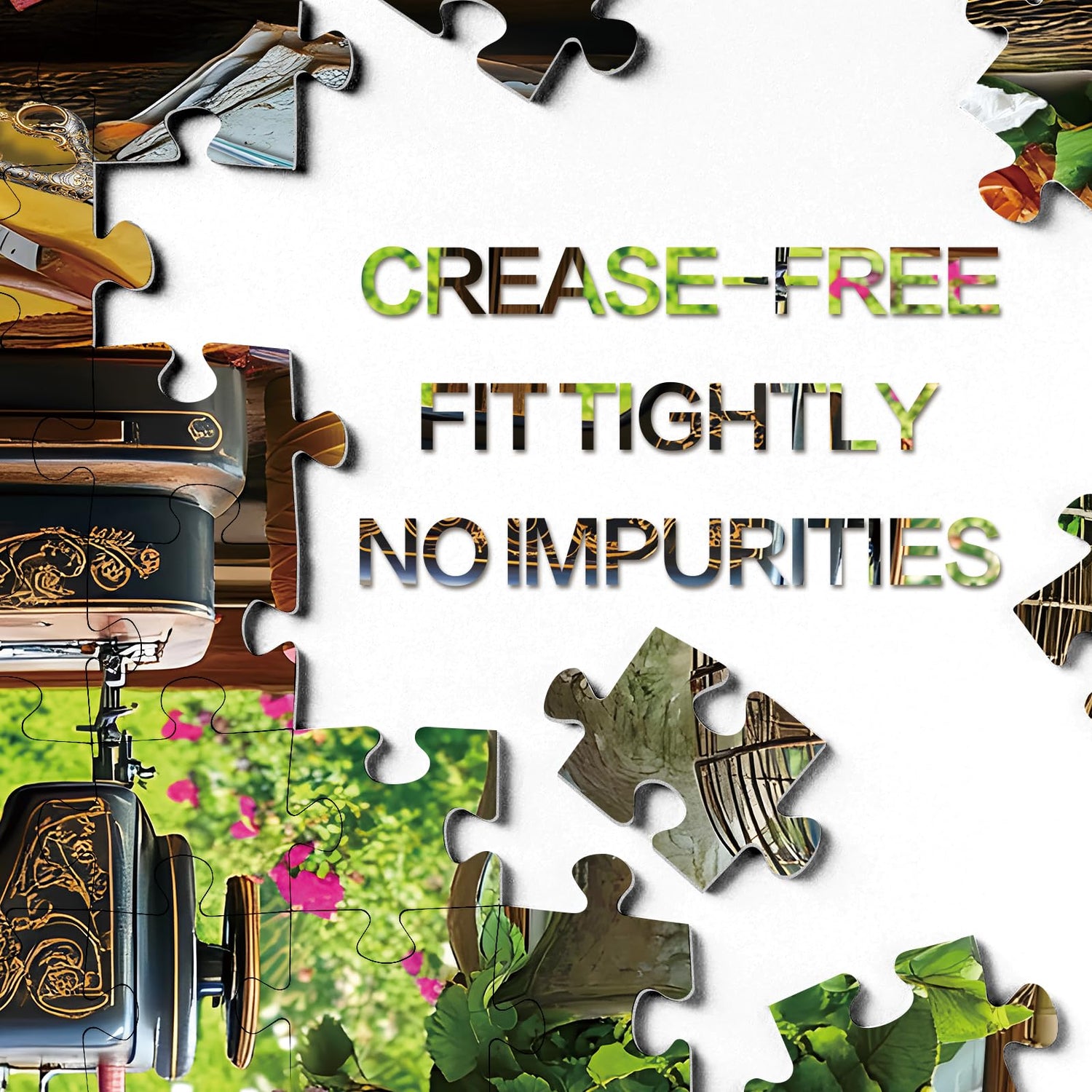 Larkipuzz Spring Stitch Vintage Sewing Machine Puzzles for Adults 1000 Pieces, Bird Vase Jigsaw Puzzles, Hard Difficult Funny Challenging Book Flower Puzzle