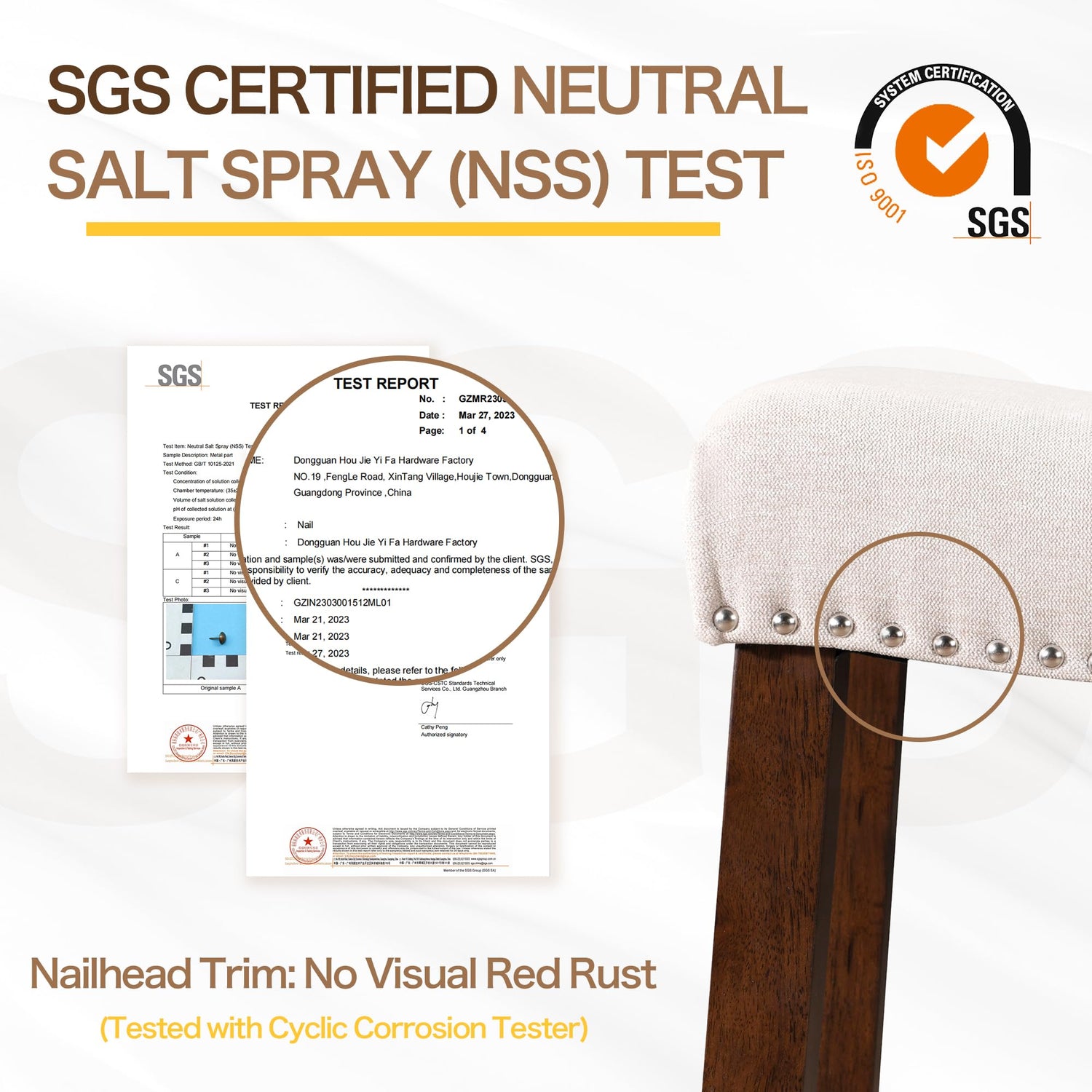 - 【SGS Certified NSS Test】After passing the Neutral Salt Spray (NSS) test by SGS and using the Cyclic Corrosion Tester, the results show that our Nailhead Trims have no visual red rust stains, which shows that our products are of superior quality and reliability, and can withstand the certification of the authoritative organization.