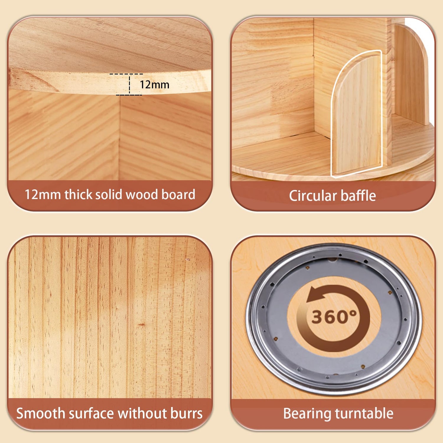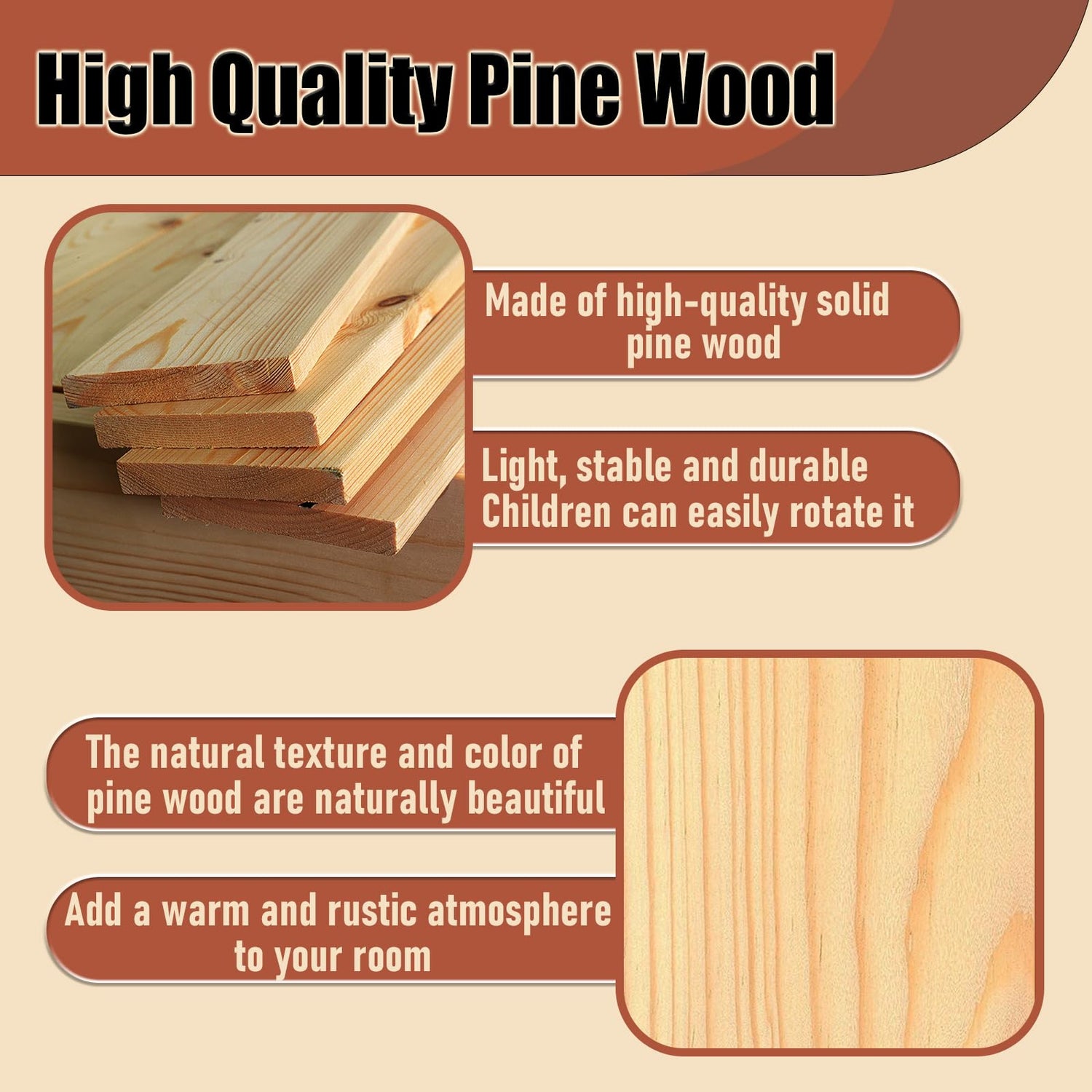 - Sturdy Construction: Our spinning bookshelf tower for kids is made of solid pine wood, which has excellent stability and durability. This high-quality material not only ensures a sturdy structure that can withstand daily use but also adds a natural aesthetic appeal to your space.