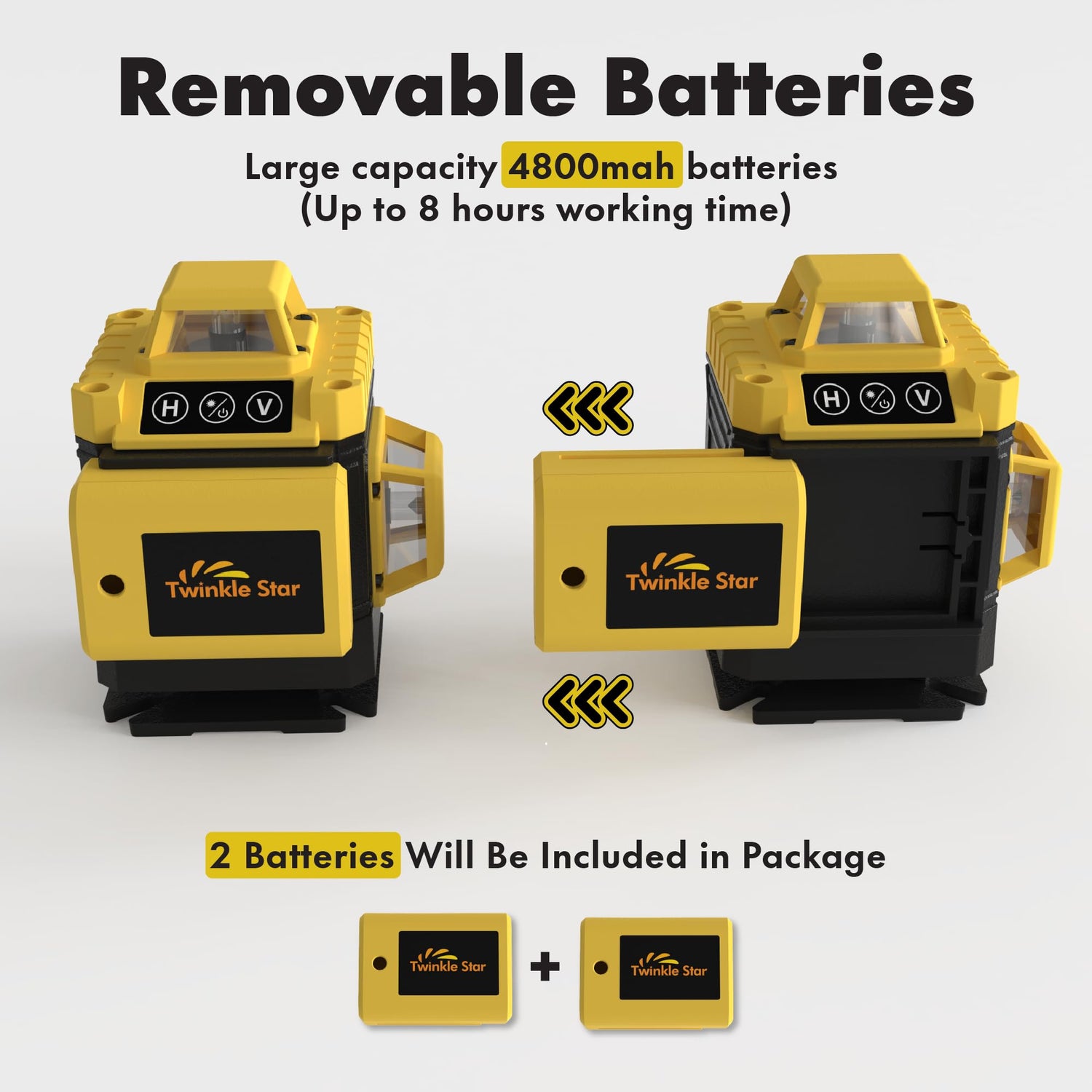 Laser Level 360 Self Leveling Twinkle Star 16 Line 4D Green Line Laser Picture Hanging Construction, 4800 mAh 2 Rechargeable battery with Remote Controller, Tool Kit, Magnetic Rotating Stand Included