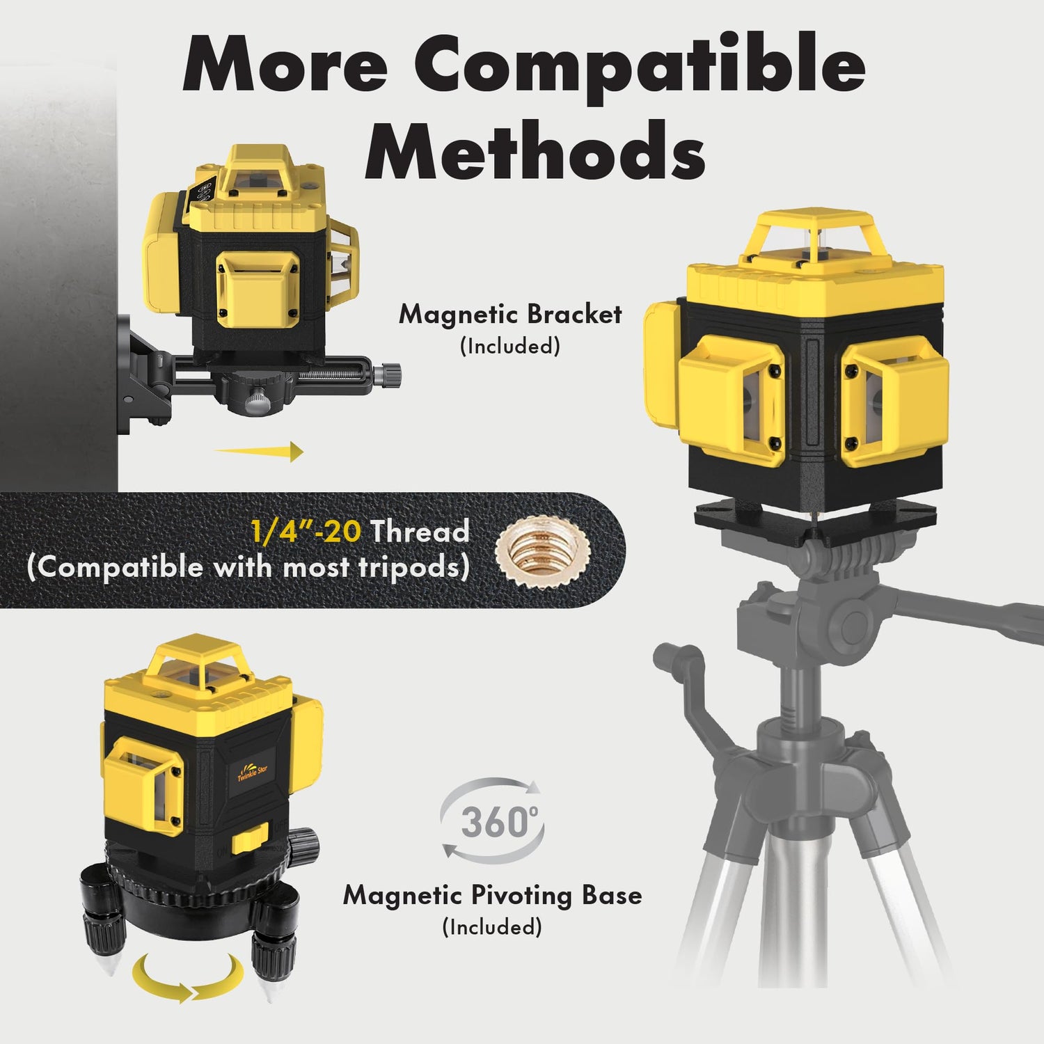- High Visibility/ Safety: Equipped with a brighter green laser that offers 4x360° coverage, this tool meets CE, FCC, and FDA safety certifications, ensuring a safe and reliable operation with a power output of <1mW