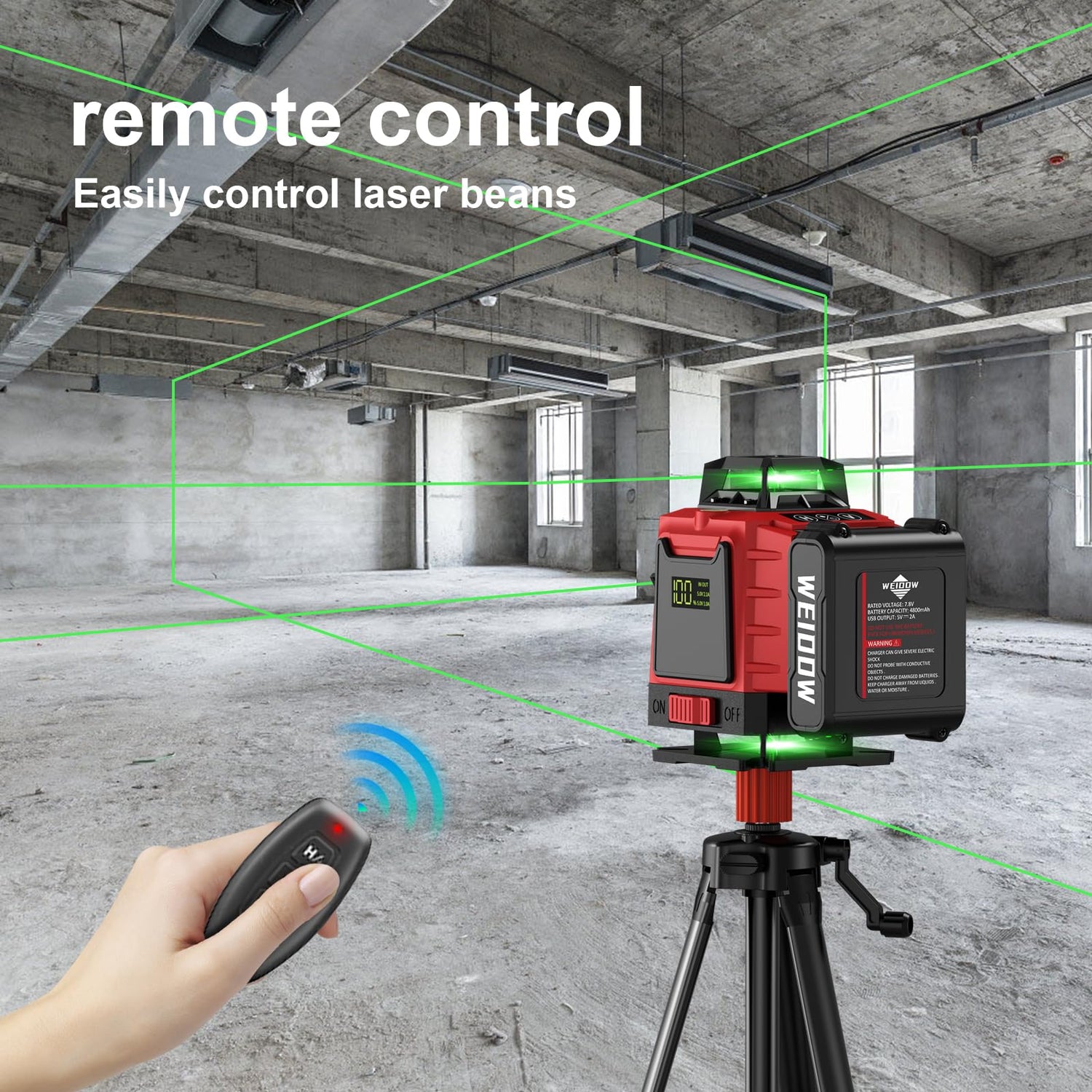 • ✅ 4 x360°Full Layout Laser Level:Weiddw laser level featuring four 360 planes of laser light.For ceiling installation,the top 360°horizontal line will be an ideal assistant tool,the 360° horizontal floor laser line can be used to install tile.The 360° floor laser level can travel past obstacles between 1" and 3.54" in height by lifting from the surface with the lifting base. User can quickly visualize and complete square layout by utilizing two 360° vertical lines that intersect at 90° angles.