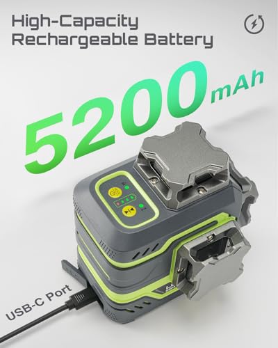 LasGoo LG-3DM Green Beam Laser Level, Self-Leveling 3x360° Cross Line Laser for Construction and Picture Hanging, 5200mAh Built-in Rechargeable Battery, Type-C Cable, Magnetic Rotating Stand Included