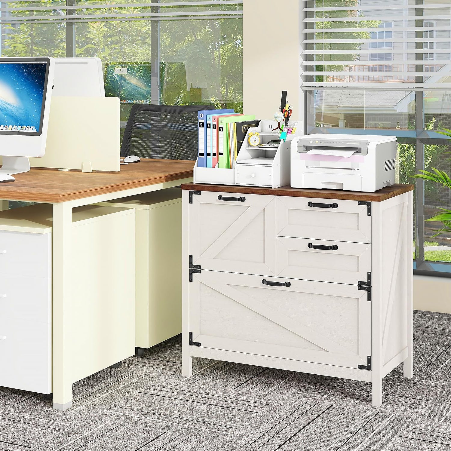 Lateral File Cabinet with 4 Drawers Farmhouse File Cabinet for Letter/Legal/A4 Size Hanging Files, Large Wood File Storage Cabinets Printer Stand for Home Office Cabinet, Rustic White