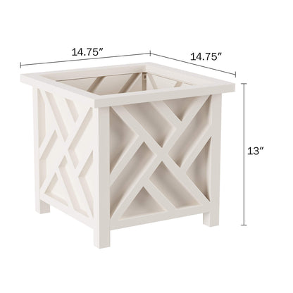Lattice Design Planter Box - 14.75-Inch-Square Decorative Outdoor Flower or Plant Pot - Front Porch, Patio, and Garden Decor by Pure Garden (White)
