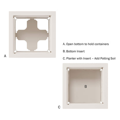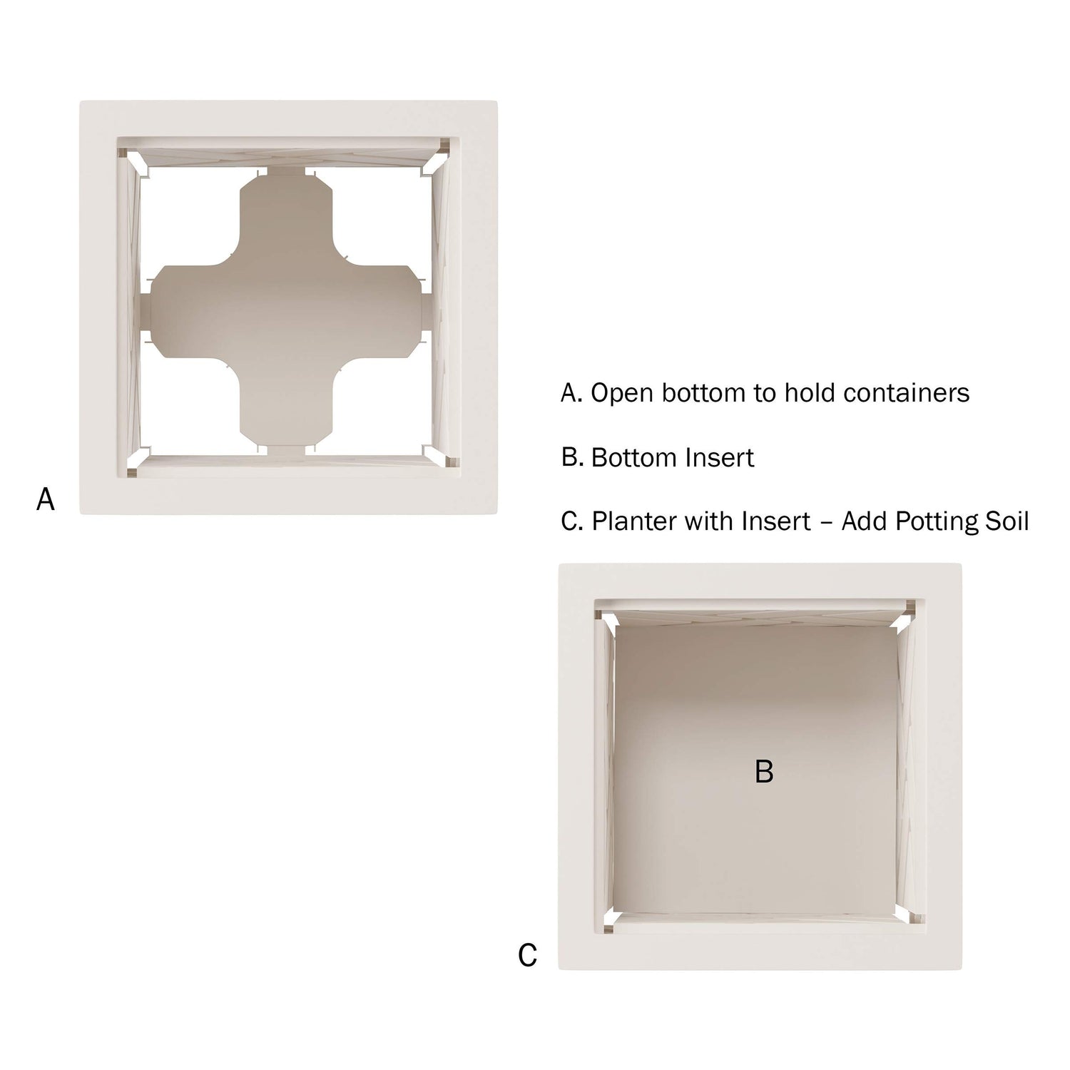 - OPEN BOTTOM WITH INSERT INCLUDED - The open T-shaped bottom keeps the pot inside elevated from the ground while allowing water drainage. The outdoor flower pot also comes with an optional bottom insert so you can add potting soil directly into the box.