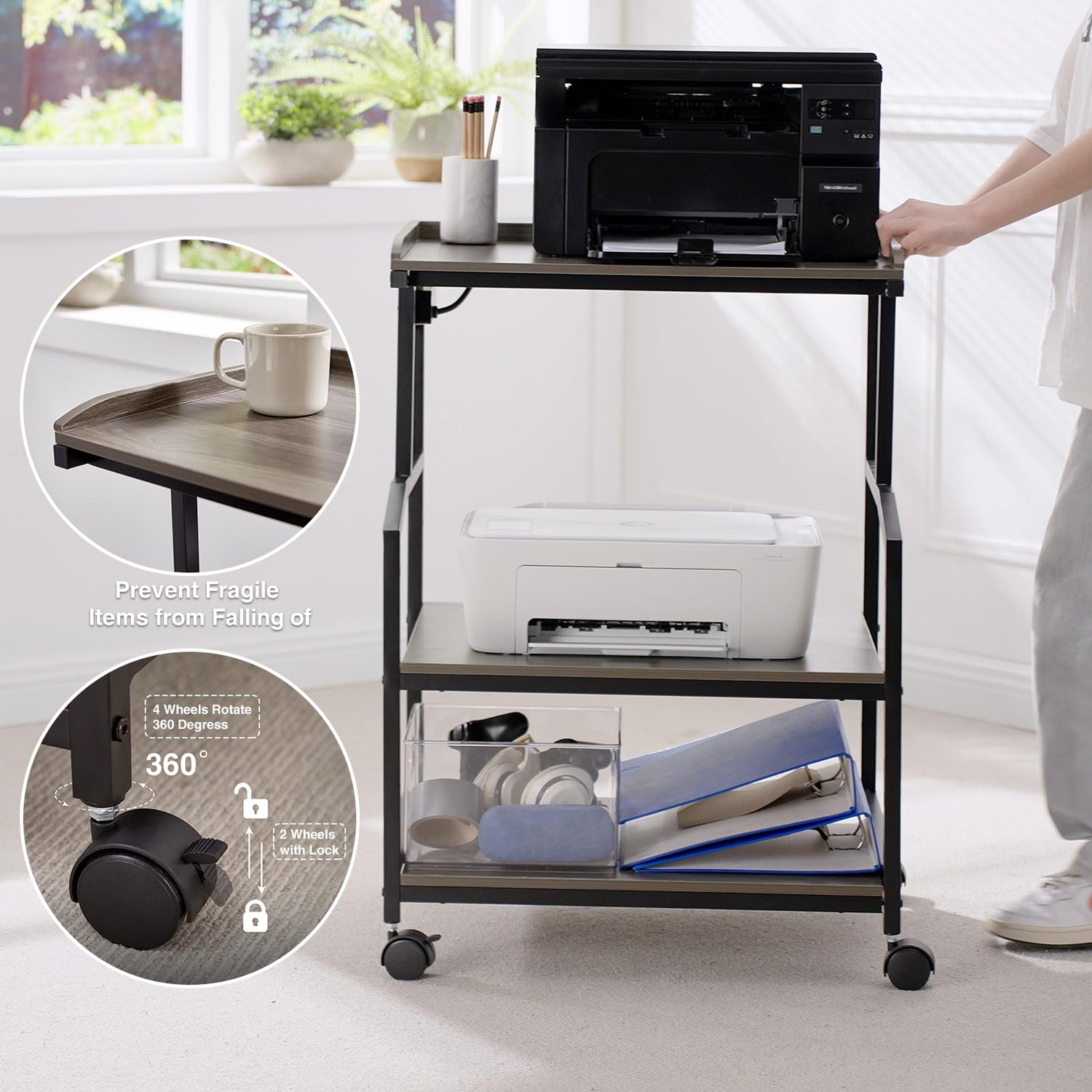- Multi-Functional Storage Rack:The Multipopose Rolling Printer Cart adopts industrial design style,is suitable for placement in various scenes. You can use it in offices, homes, bedrooms, study rooms, kitchens, etc.The 3-tier printer cart with wheels can also be used as a file cabinet, kitchen cart, coffee table, sofa end table, plant stand rack, living room storage rack, nightstand.