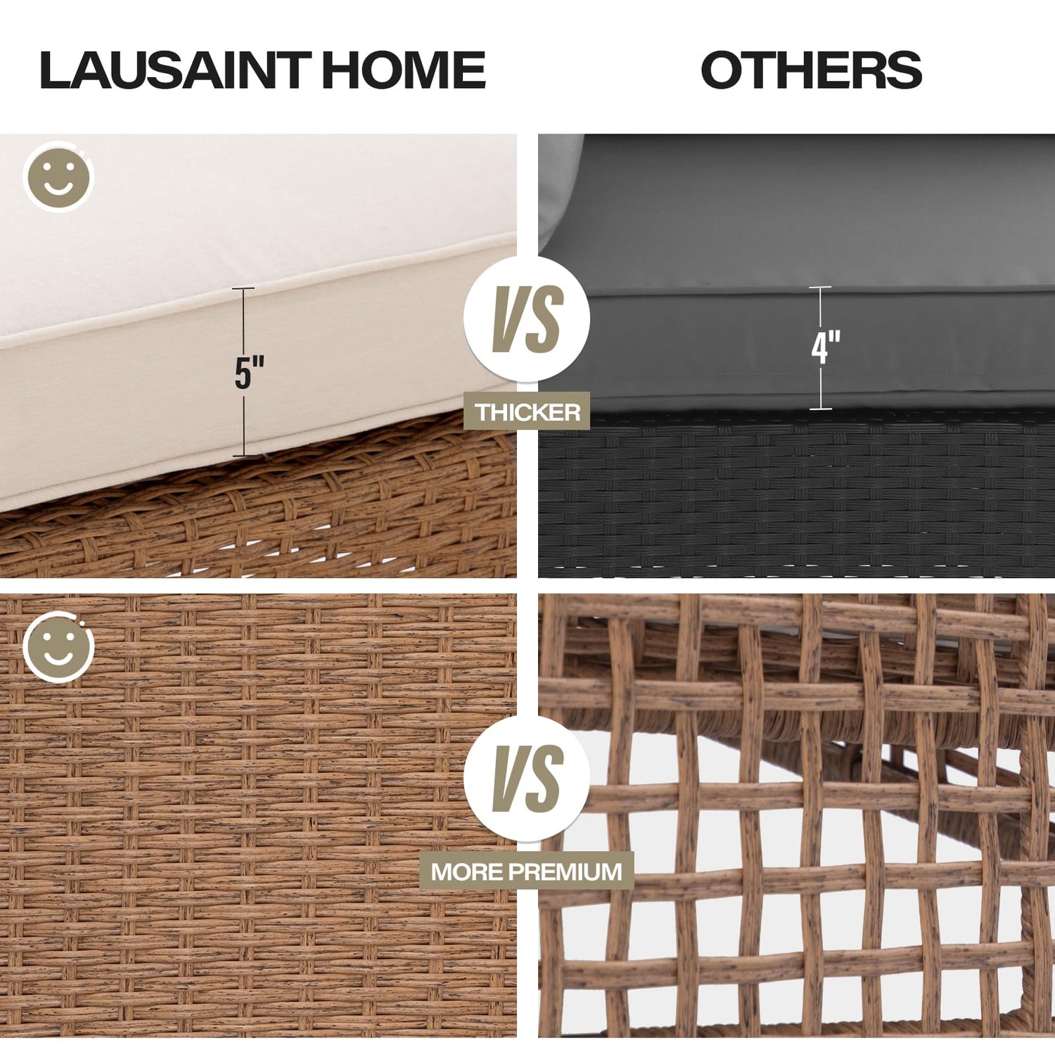 - 【Modern & Modular Design】LAUSAINT HOME Gentle Chic 6-piece modern design outdoor sectional will provide a comfortable space to chat with your friend. It can be separated and arranged in various ways to fit your outdoor space. Fashionable PE rattan and thickened cushions complement almost any home or landscaping theme. Our patio furniture set is suitable for the backyard, patio, and garden.