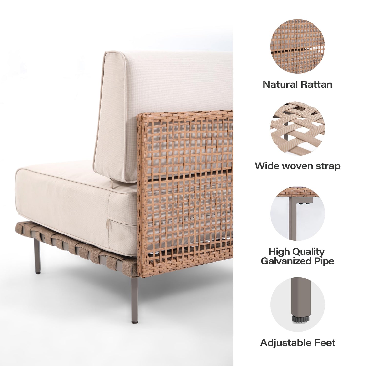 - Sturdy and Stylish Construction: The LAUSAINT HOME patio set features high-quality galvanized steel frames and natural-colored premium rattan weaving for timeless elegance and durability. Each foot has adjustable table legs for stability on uneven surfaces.
