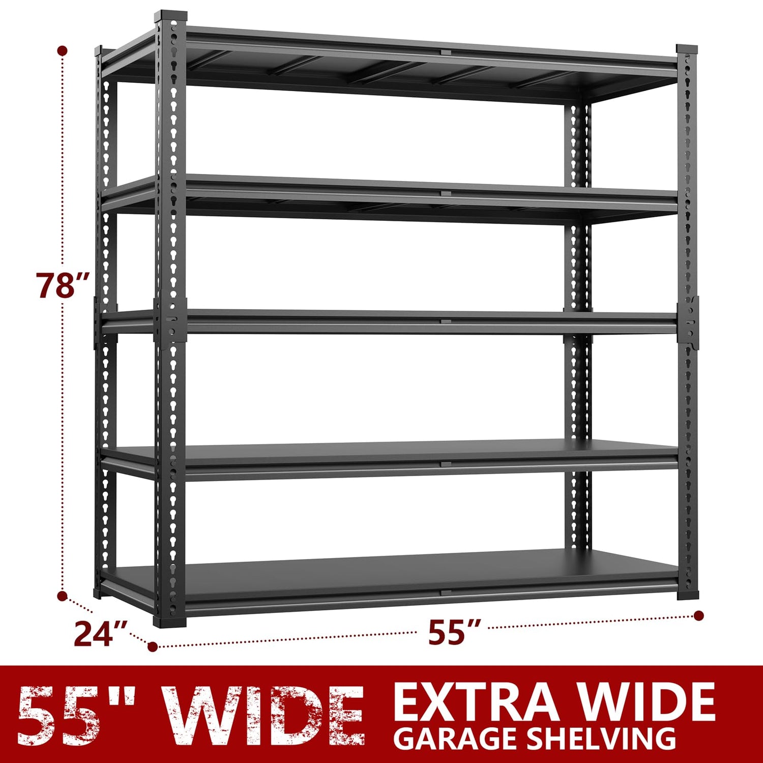 Lauxery 78” H x 55”W x 24”D Metal Garage Shelving, Adjustable 5 - Tier Basement Shelving, Easy Assembly, Large Size Heavy Duty Storage Rack for Garage, Basement & Workshop