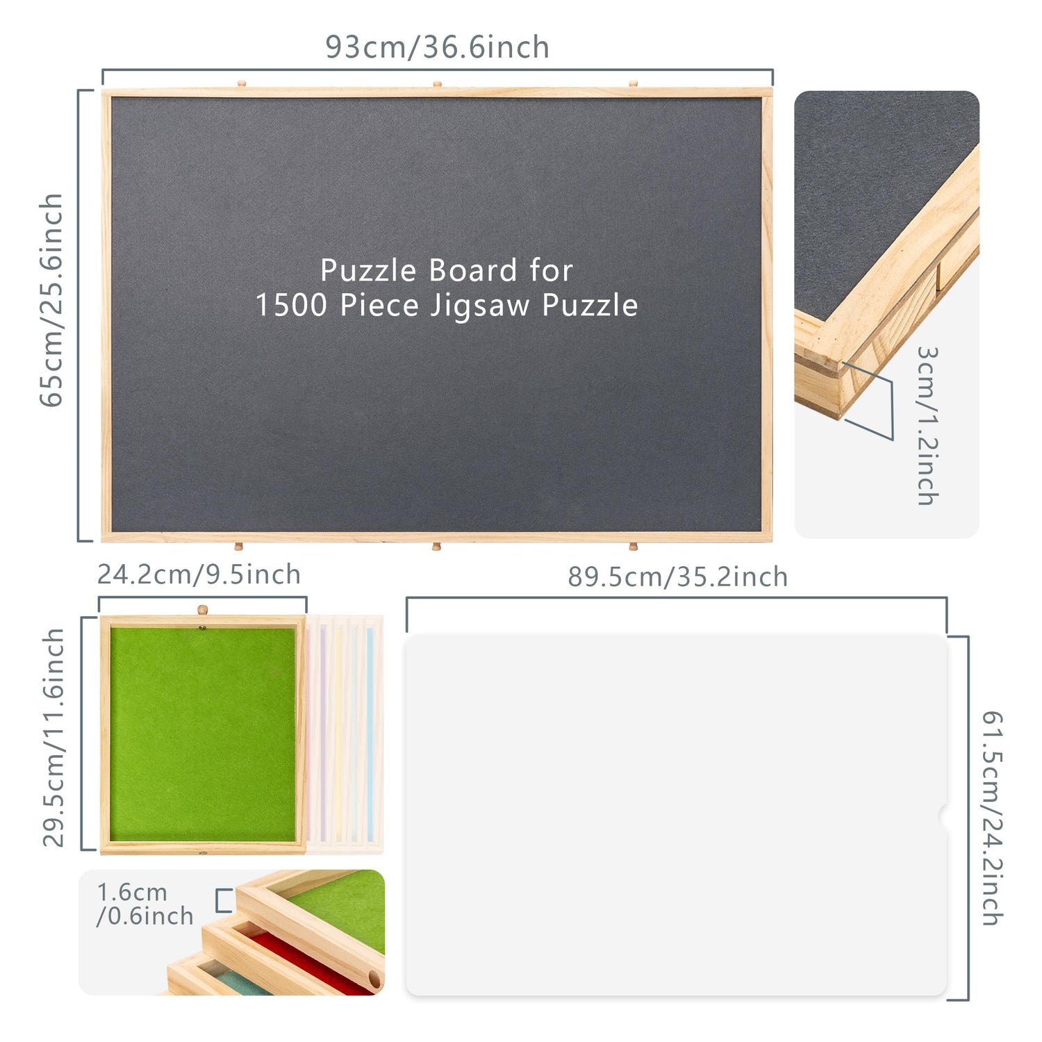 - 1, 500 Pieces - Surface of puzzle board is covered with gray felt fabric to ensure fiction and stop puzzle pieces from falling of and missing. Features a usable area of 35.4 × 24.4 in (90 × 62 cm), fitting jigsaw puzzle games up to 1, 500 pcs. It is the mainstream size and can meet your multiple needs.