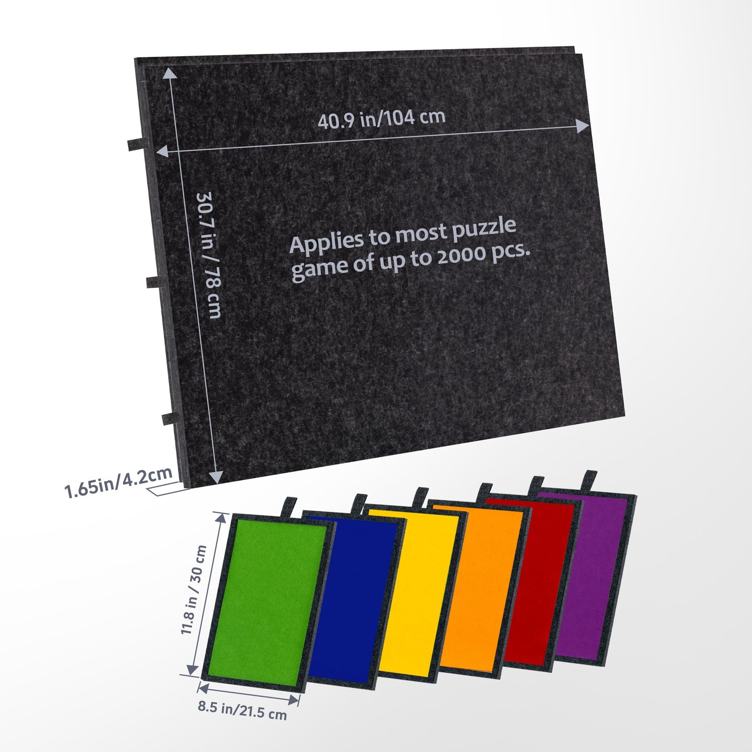 - Fits 2, 000 PC Games - Usable area measures 40.9 × 30.7 in, ideal for most 2, 000 pc jigsaw puzzle games. Our jigsaw puzzle board table is tailored out of high quality felt fabric and performs well in bend-resisting tests. Surface offers an excellent texture and enough friction to effectively stop puzzle pieces from sliding and falling.