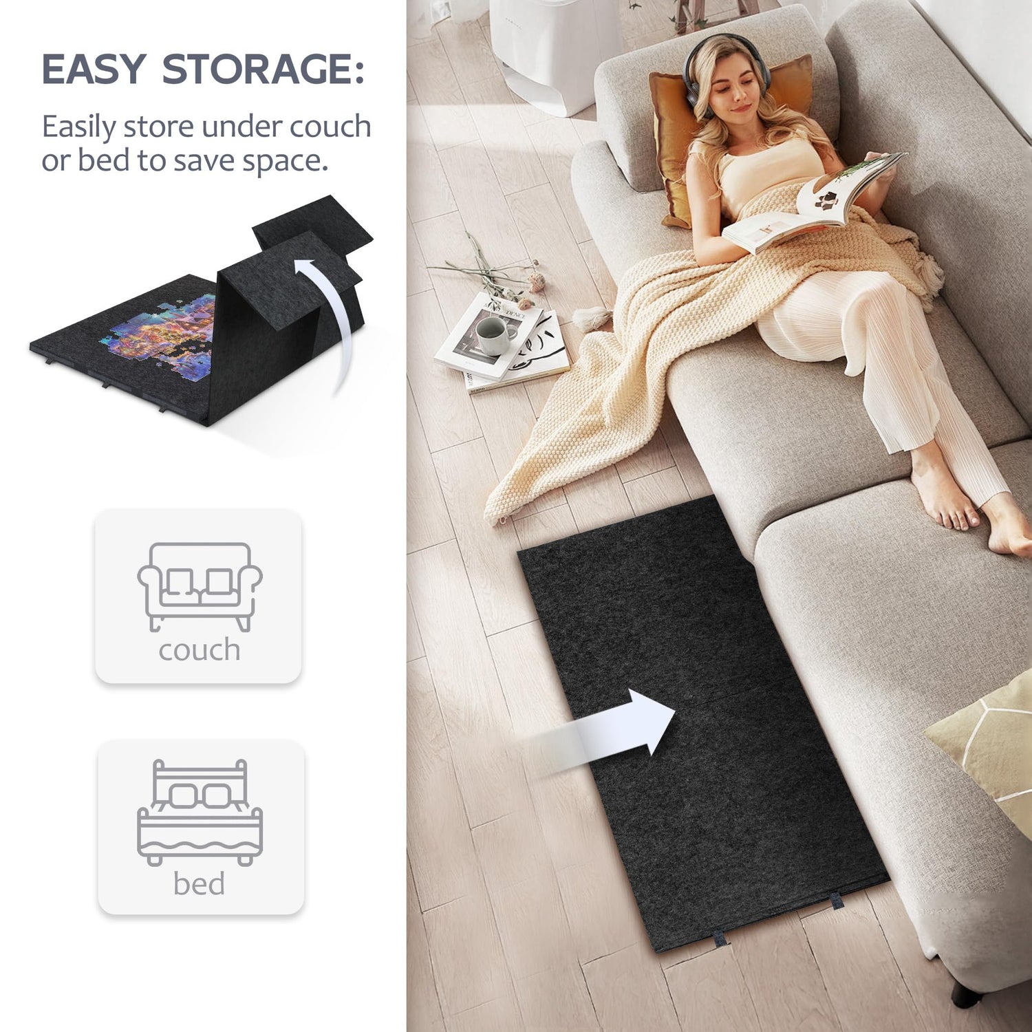 - Lightweight & Foldaway Jigsaw Puzzle Board - Tailored out of premium felt fabric, Lavievert felt jigsaw puzzle board features (Only 8.37 lb) a much less heavier weight than wooden puzzle boards of the same size. Designed foldable to effectively reduce storage area and is ideal for puzzle lovers with small rooms.