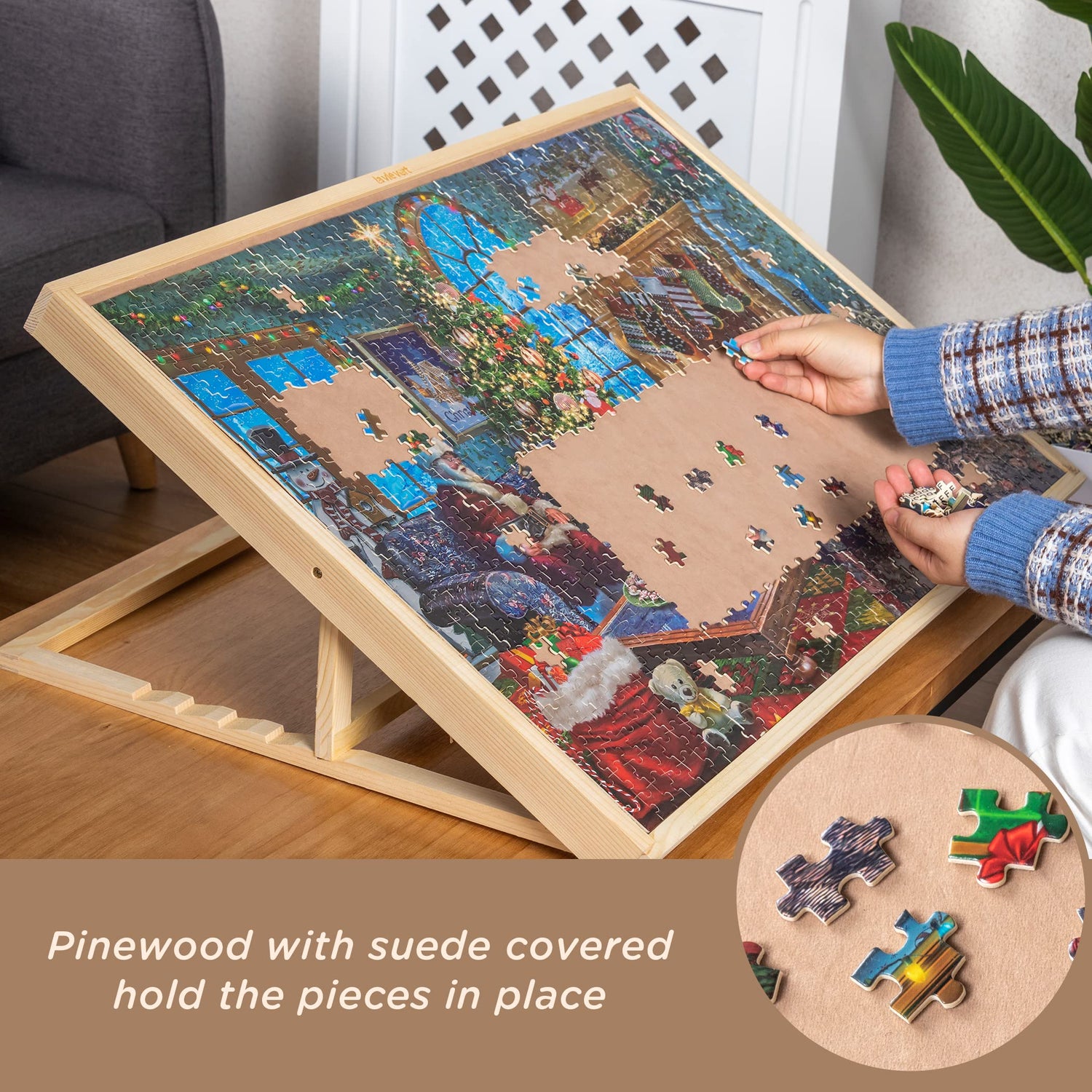 Lavievert Adjustable Jigsaw Puzzle Board with Wooden Cover, 5-Tilting-Angle Puzzle Easel for Adults, Portable Puzzle Table with Non-Slip Surface for Games Up to 1000 Pieces
