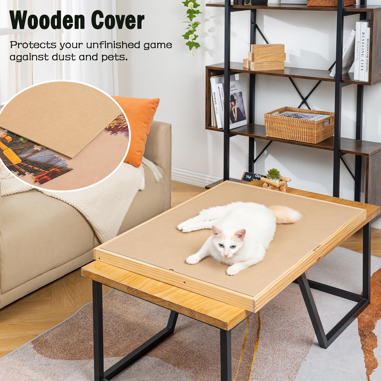 - Protective Cover - Comes with a wooden cover to protect your unfinished puzzle game against missing pieces. Also resists dust and water as well as prevents puzzle pieces from being messed by naughty pets.