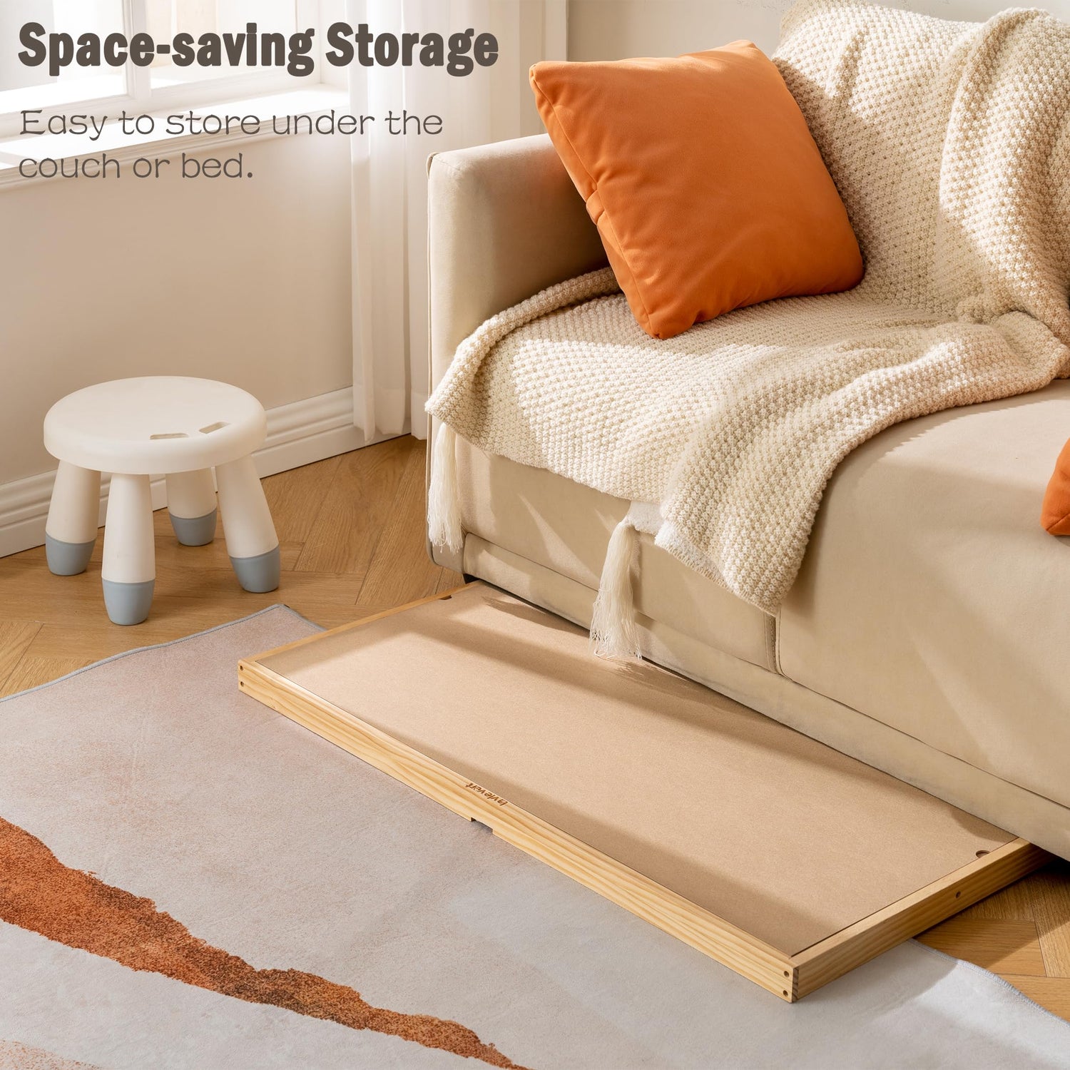 - Easy to Transport & Store - This product is lightweight enough to be moved and placed on any flat surface like dinner table, coffee table or even floor. When you need extra space to sit on or tabletop space for dinner, just fold up the stand, cover it with the protective lid, then store it under the couch or bed to save space.