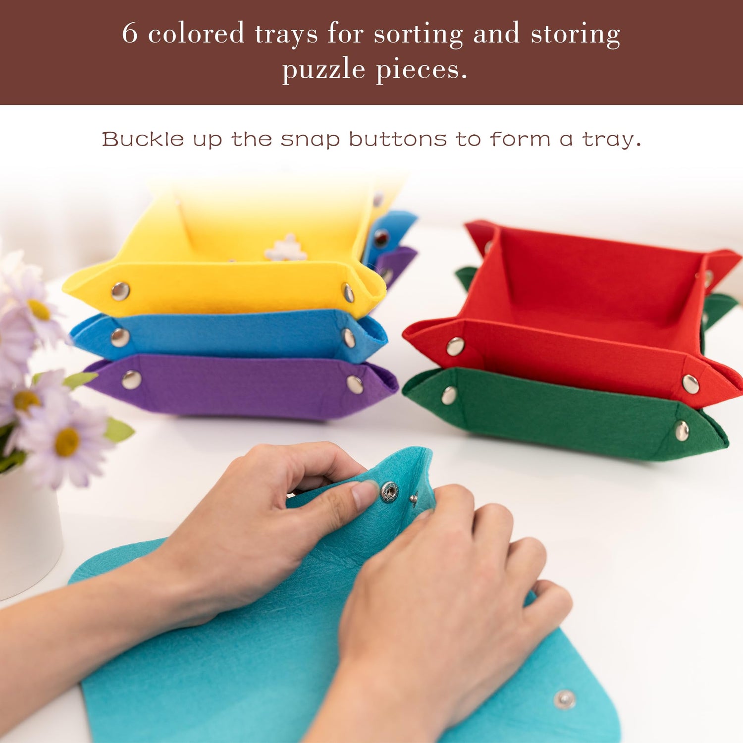 - 6 Colored Trays - Designed with 6 sorting trays to improve game efficiency by allowing you to sort puzzle pieces by color, theme or rim. Also help to preserve unused pieces and accessories for future use. It just gives puzzle lovers endless puzzle fun!