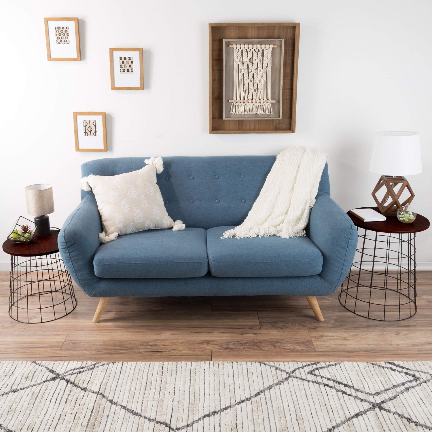 Details: Enhance the look of your living room furniture while gaining a functional storage solution with the End Tables Living Room Set of 2 by Lavish Home. This side table set is designed to offer a stylish storage option for any living room, bedroom, office, or other small space and acts as a useful alternative to traditional side tables living room. Each end table features a basket base that can be used for blanket storage for living room, for bedroom storage, or for holding books, pillows, clothes, toys, and more. The metal grid pattern on the wire basket pairs well with the woodgrain look on the wooden veneer lid, giving your space a stylish upgrade while perfectly complementing any modern, farmhouse, vintage, or industrial decor.