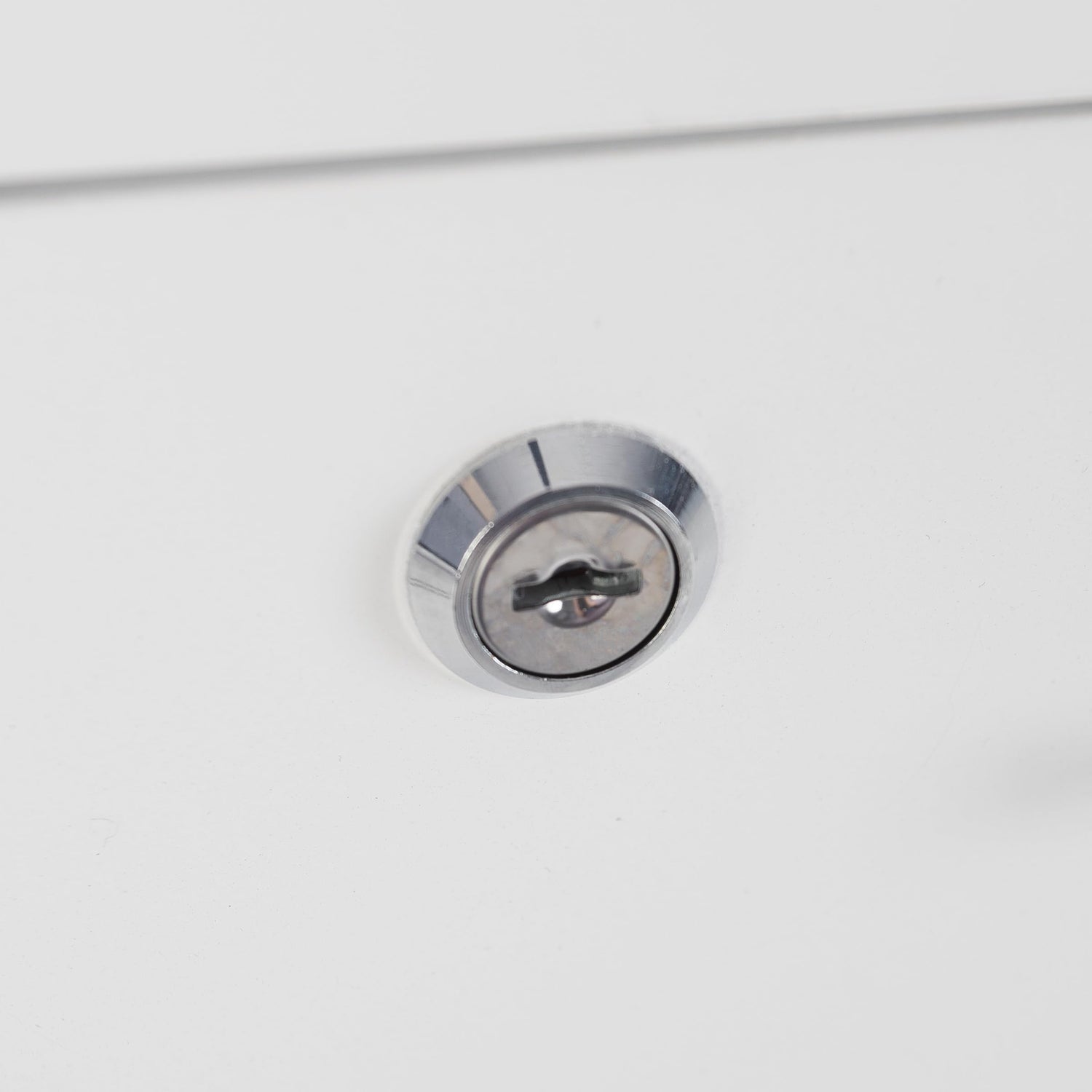 - LOCKING FILE CABINET - This white file cabinet features a lock that provides you with secure under desk, home, or office storage. Keep your important documents, paperwork, and letters locked up tight in this locking cabinet.