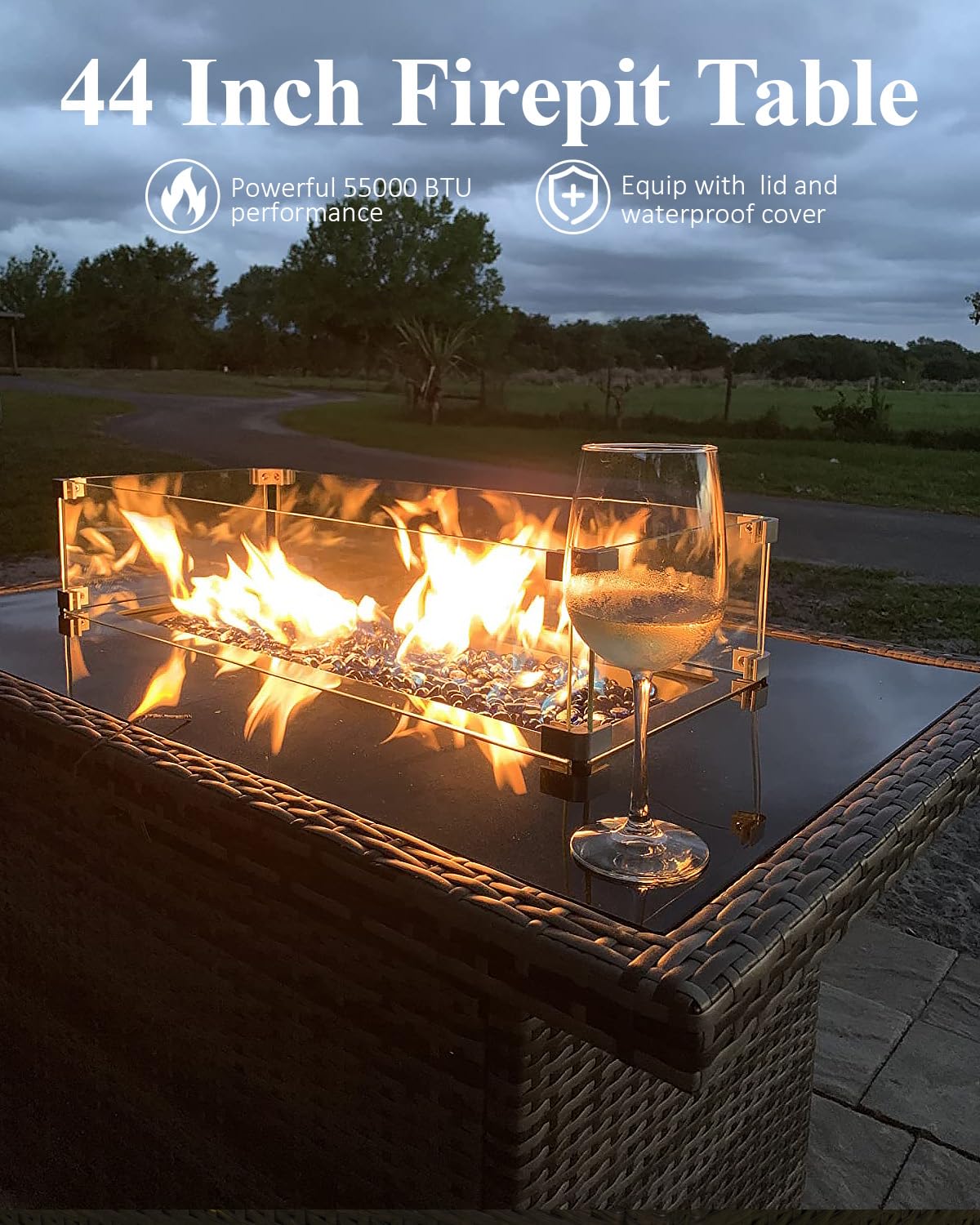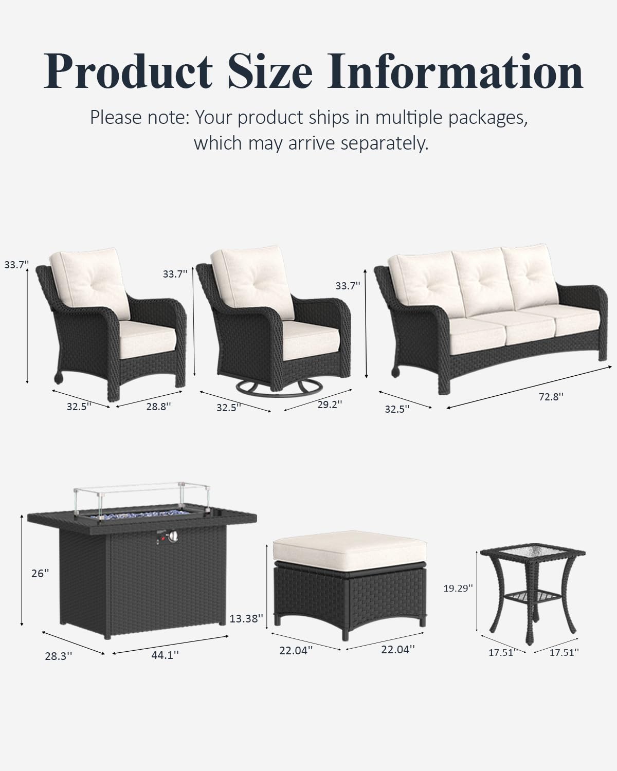 LayinSun 10 Piece Wicker Outdoor Furniture Set with 6-inch Comfy Cushions, High Back Patio Furniture Set with Swivel Rocking Chairs and Fire Pit Table