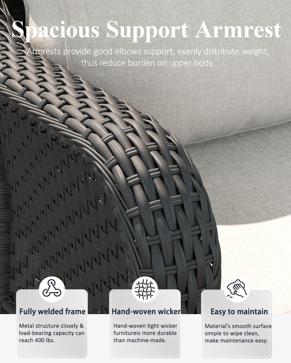- SUPERIOR OUTDOOR STABILITY: The outdoor swivel chair adopts a powder-coated frame as a whole, closely combining the sturdy and durable PE rattan with the metal structure. Its load-bearing capacity can reach 400lbs, which better demonstrates the long-term durability and stability of the swivel chair outdoors.
