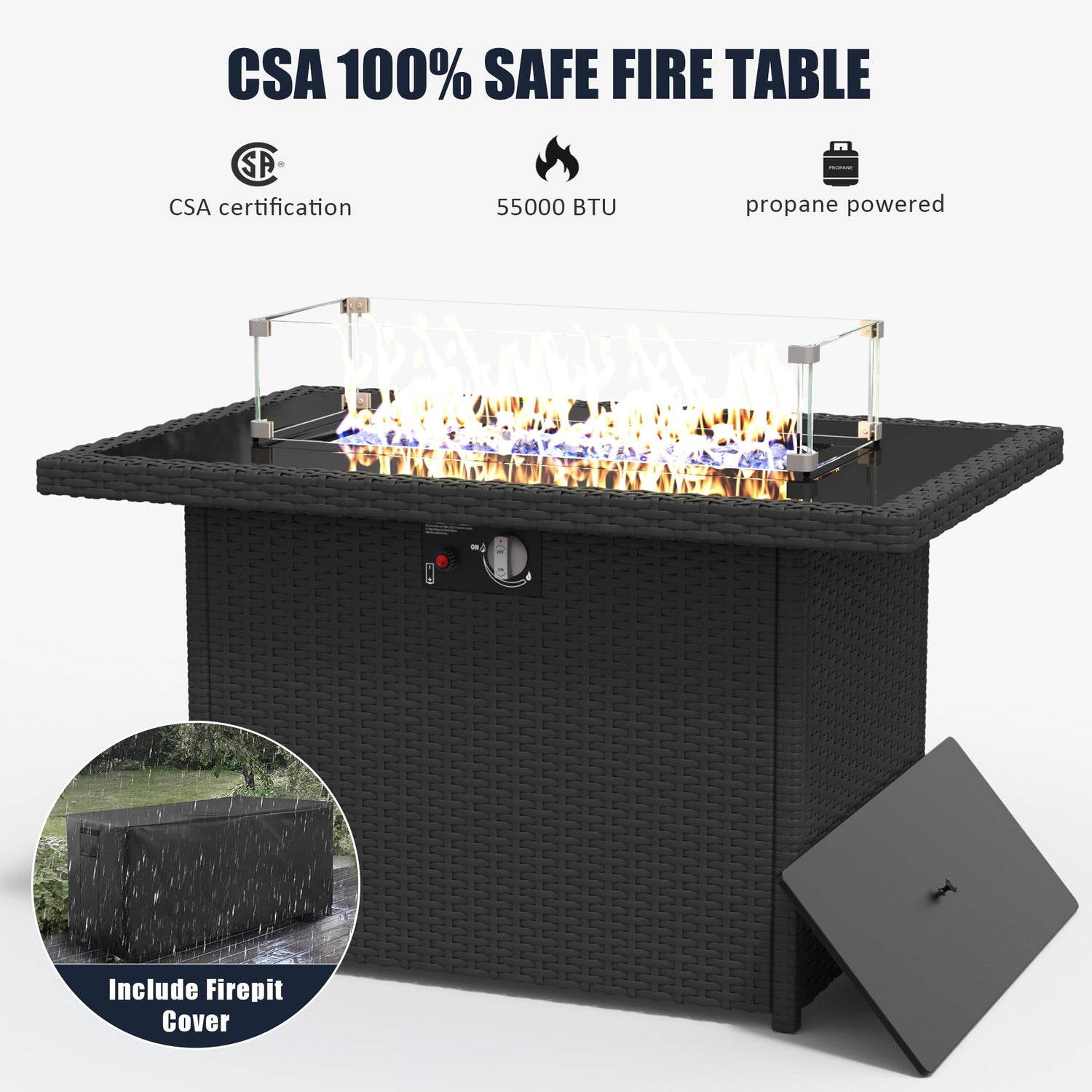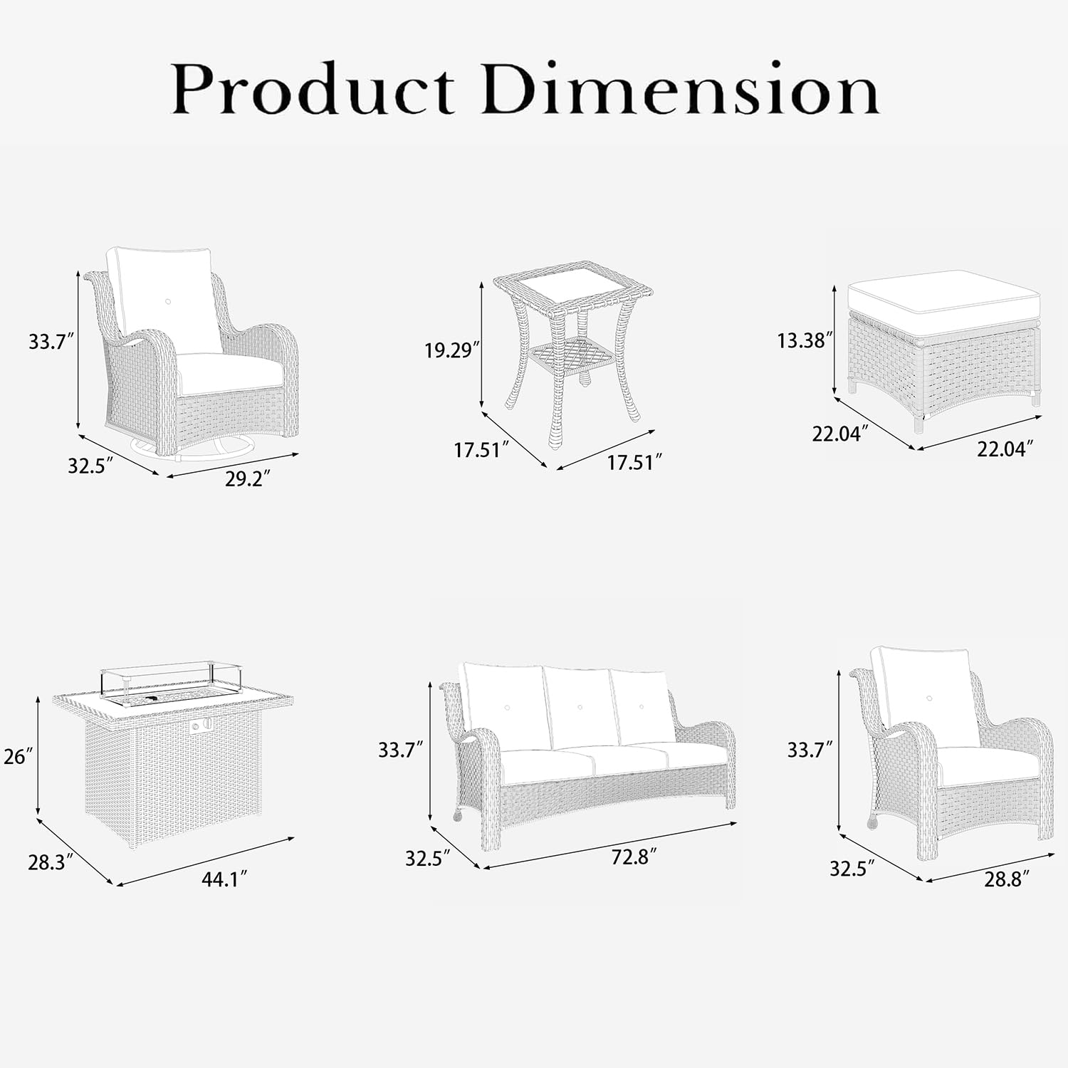 LayinSun 10 Pieces Outdoor Patio Furniture Set with Fire Pit Table, Rattan Wicker Sectional Swivel Rocker Chairs Sets with Ottomans, Swivel Glider Chair, Single Chairs and Coffee Table