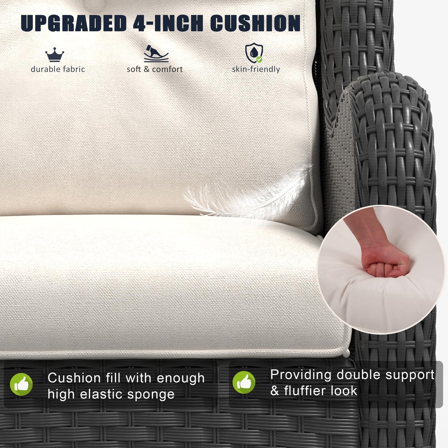 - EXTRA COMFORT CUSHION: Cushions are upholstered in top-of-the-line Olefin fabric, offering ultimate comfort, easy cleanability, and stain resistance. The 4-inch thick cushion is filled with a thickened high-resilience sponge to stay fluffy & non-deformation and give your body plenty of support.